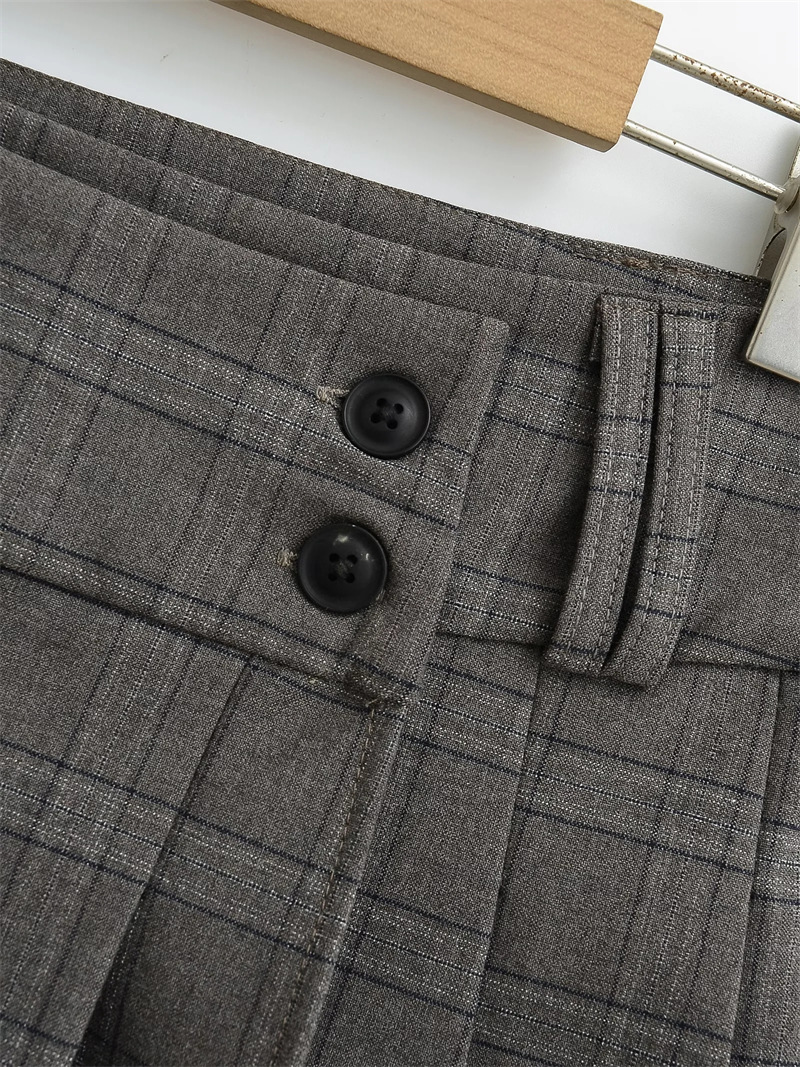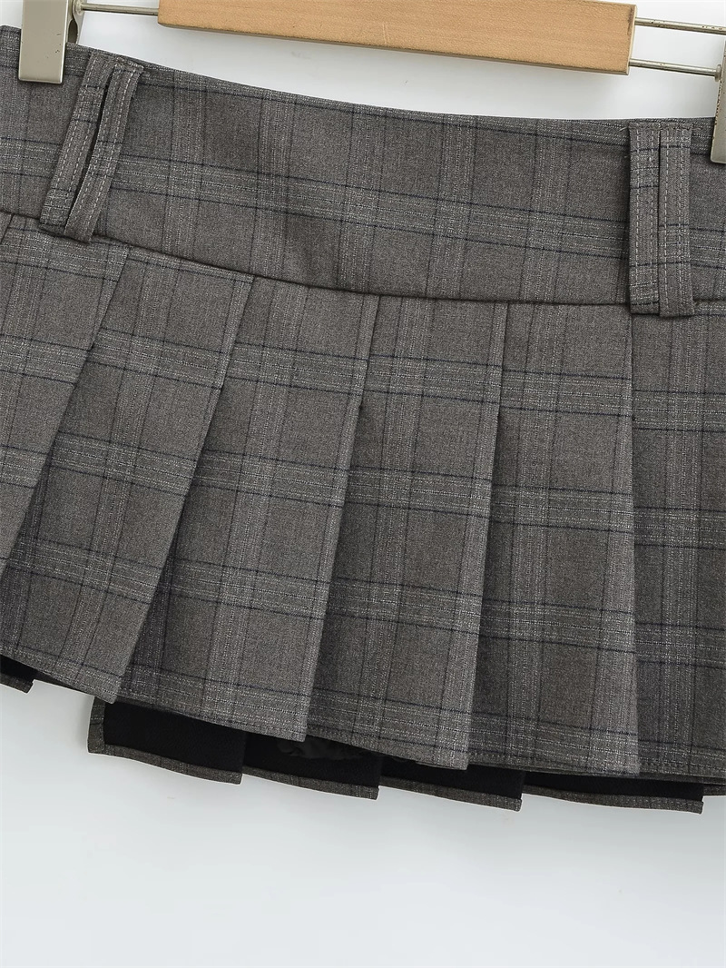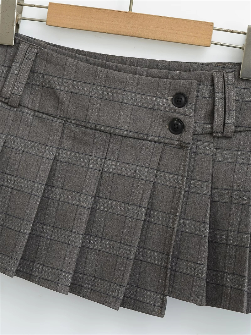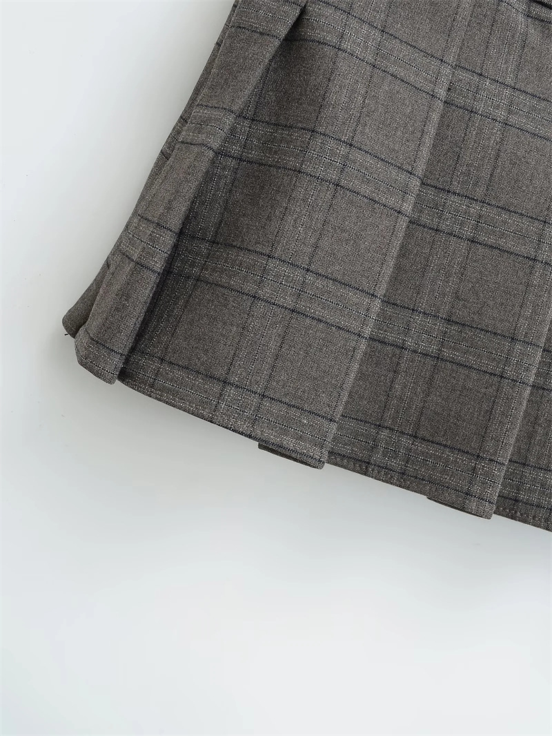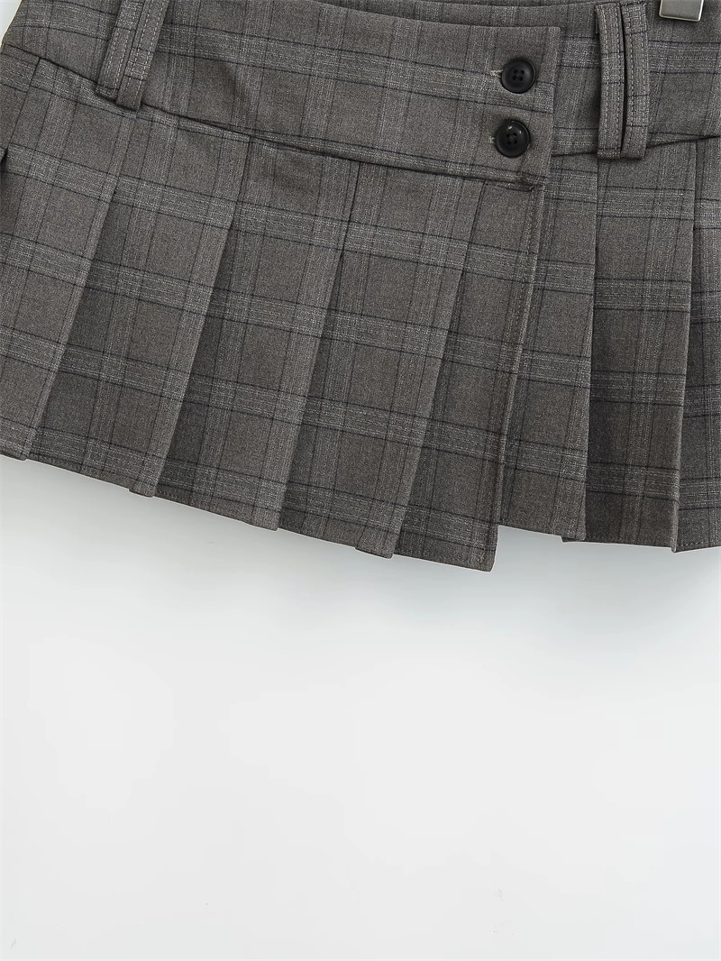 미국 틈새 레트로 격자 무늬 높은 허리 스커트 디자인 센스 헴 불규칙한 주름 된 안티 러닝 라이트 미니 스커트
