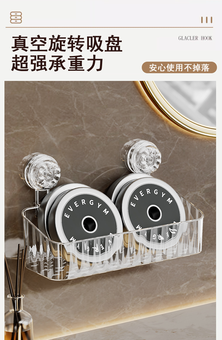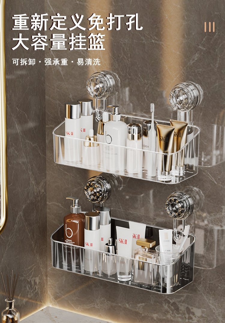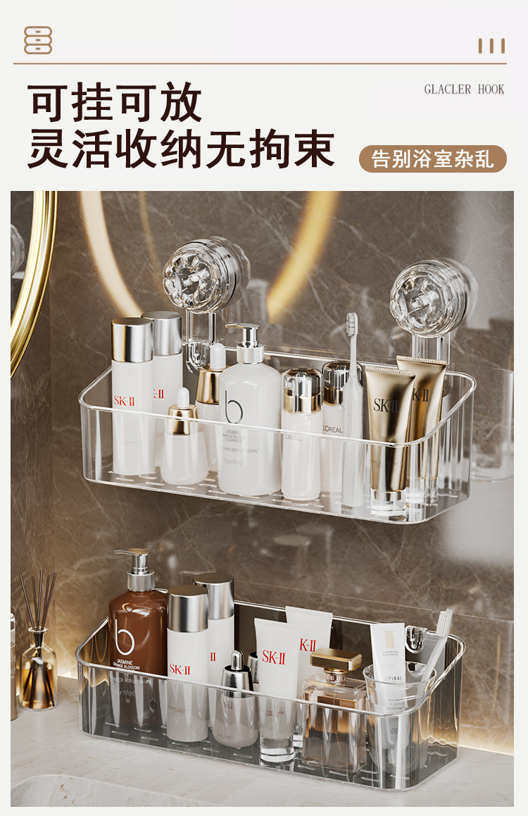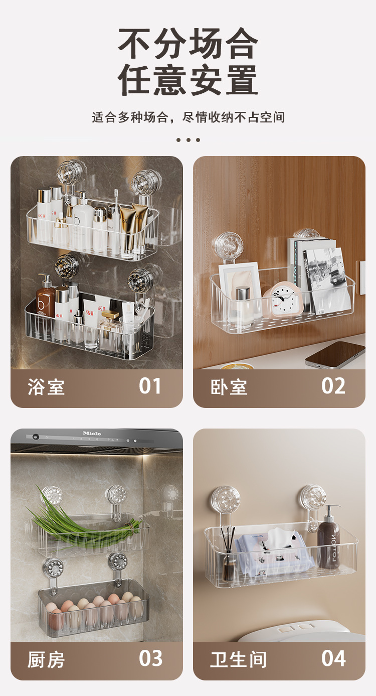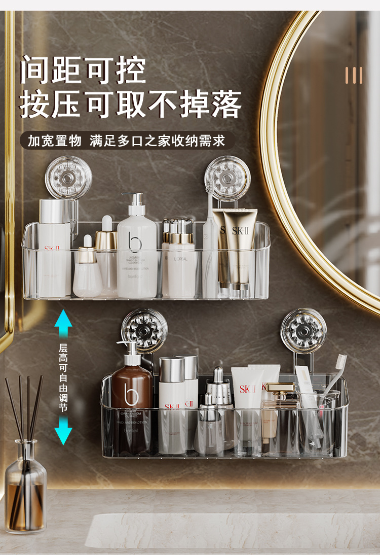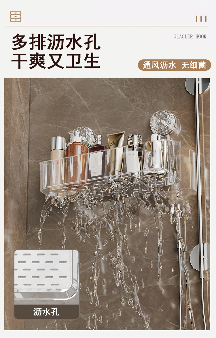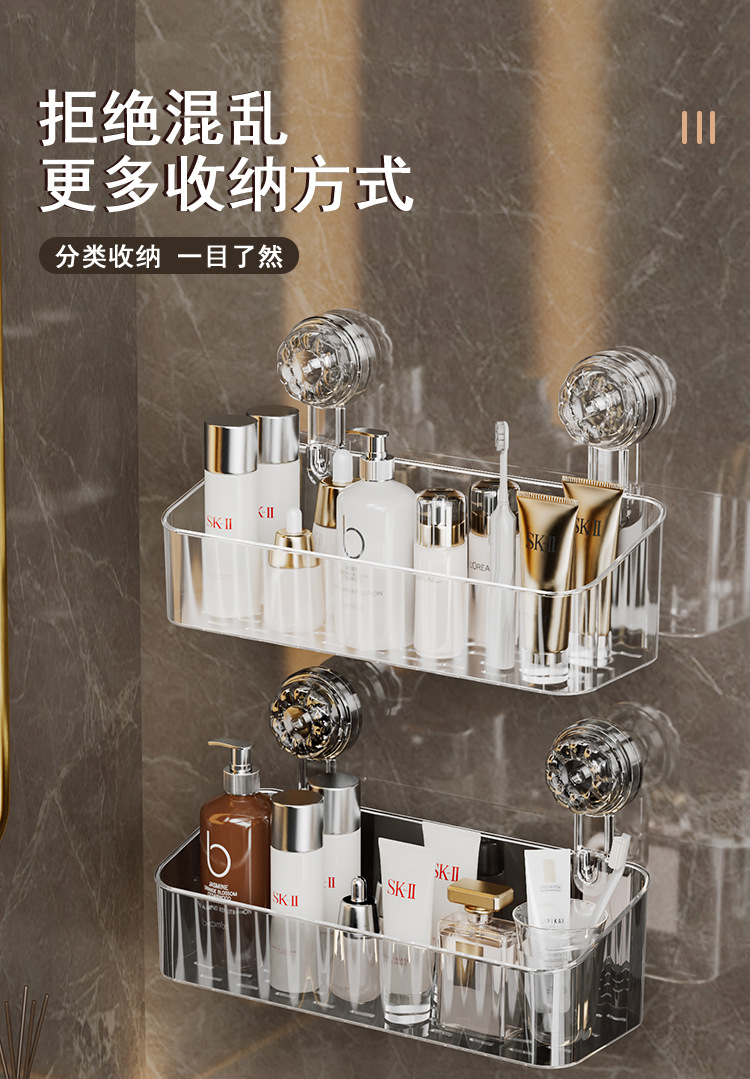 화장실 가벼운 고급 아크릴 랙 고강도 하중지지 흡입 컵 저장 랙 저장 유물 제조 업체 도매스토어 가기