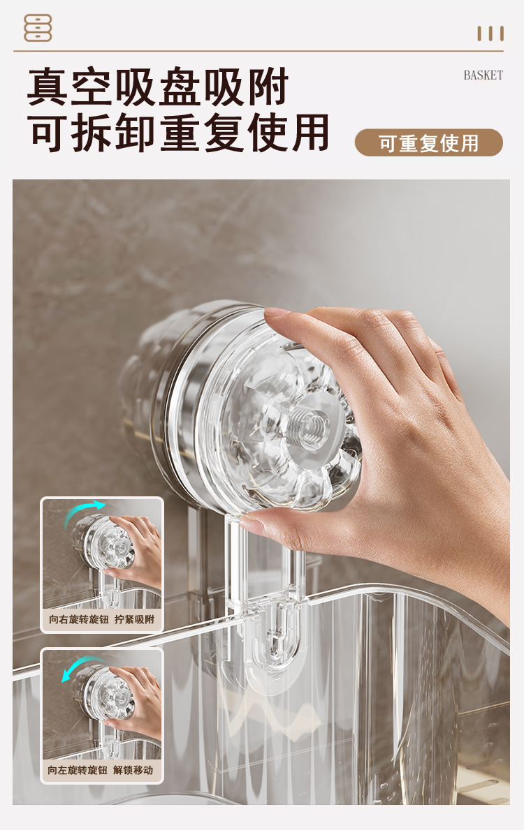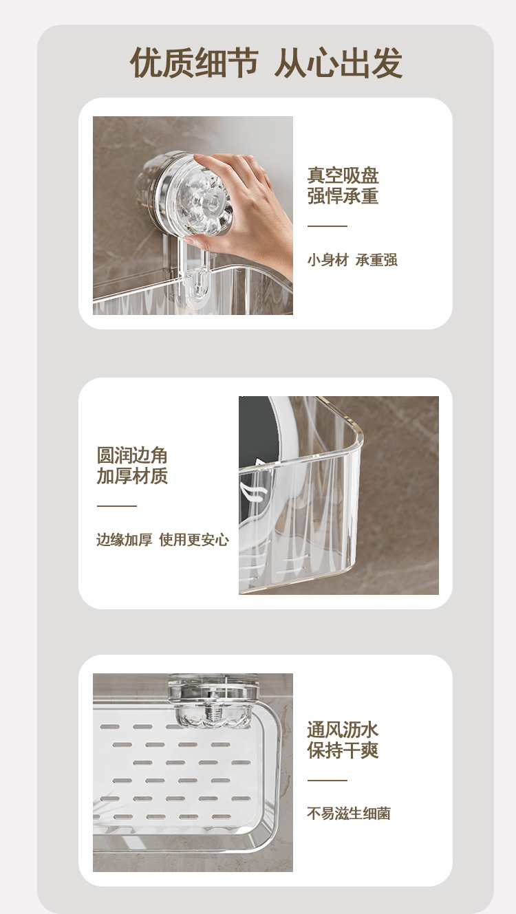 화장실 가벼운 고급 아크릴 랙 고강도 하중지지 흡입 컵 저장 랙 저장 유물 제조 업체 도매