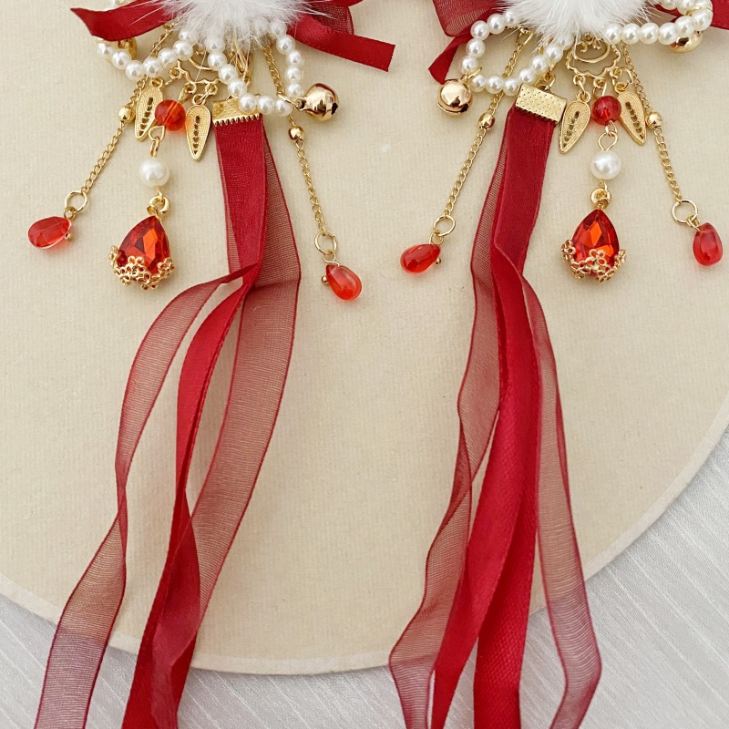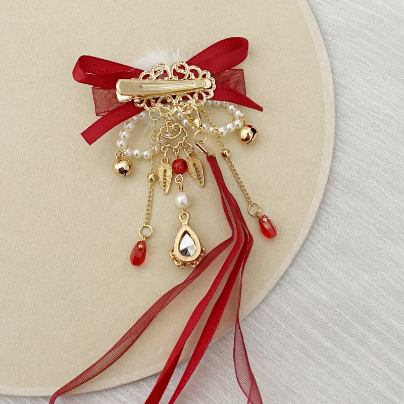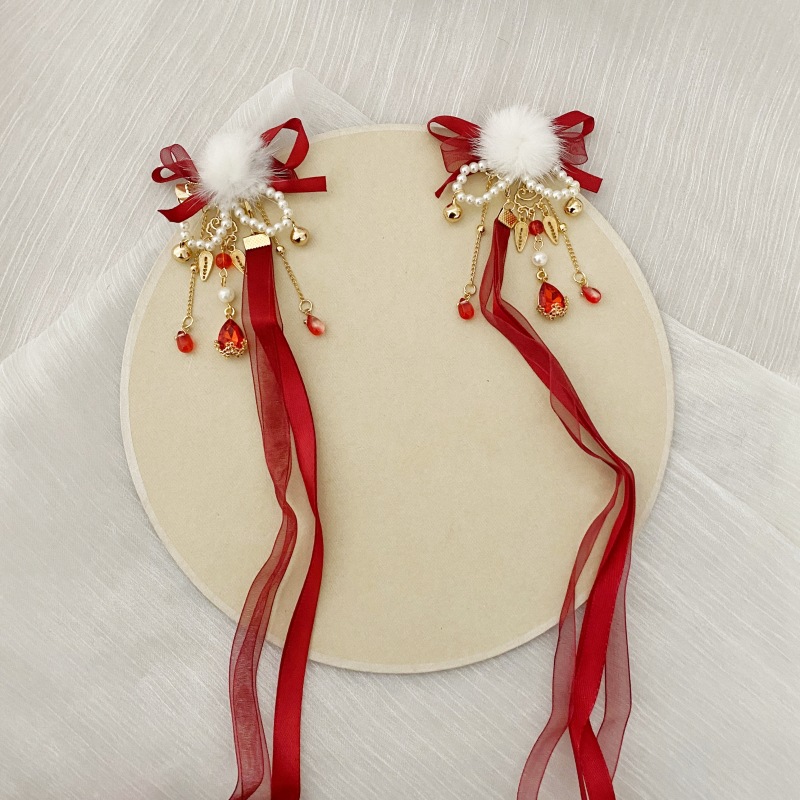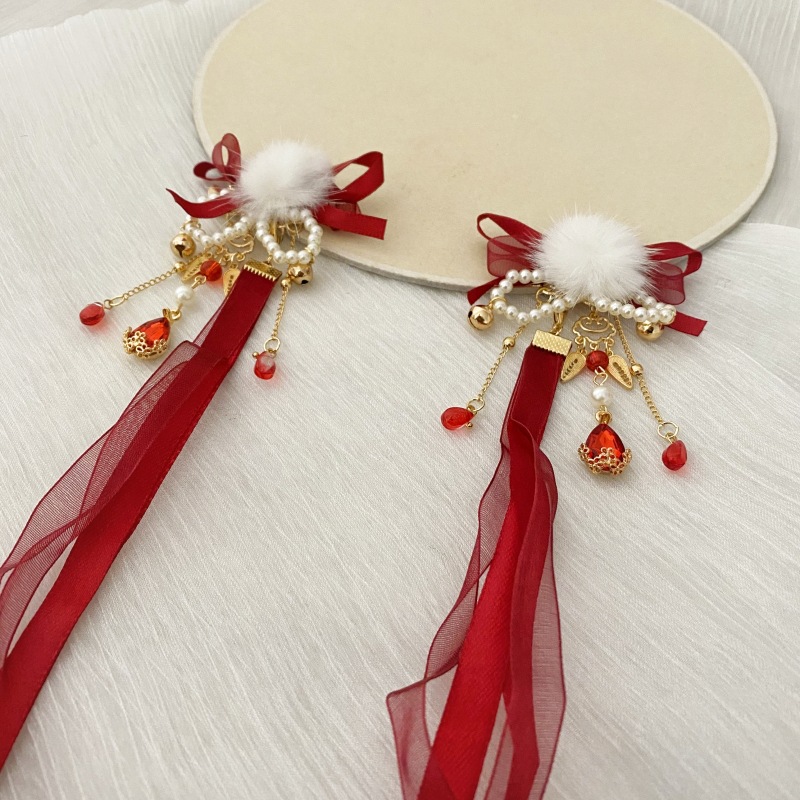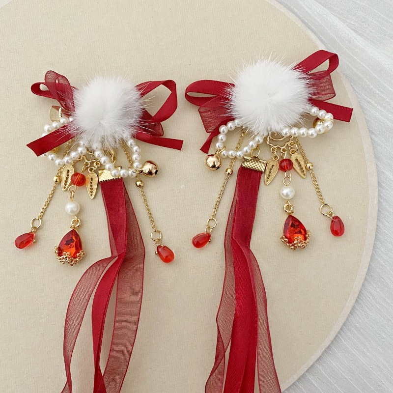 한 중국 스타일 국가 스타일 헤어 볼 헤어 클립 귀여운 새해 술 탕 스타일 노래 스타일 포스트 프레스 헤어 액세서리 긴 스트리밍 골동품 헤드웨어