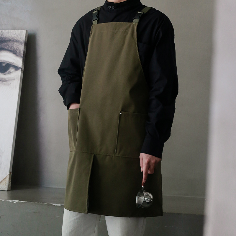 아마존 슬릿 방수 앞치마 커피 레스토랑 캔버스 앞치마 순수 코튼 주방 로고 작업복