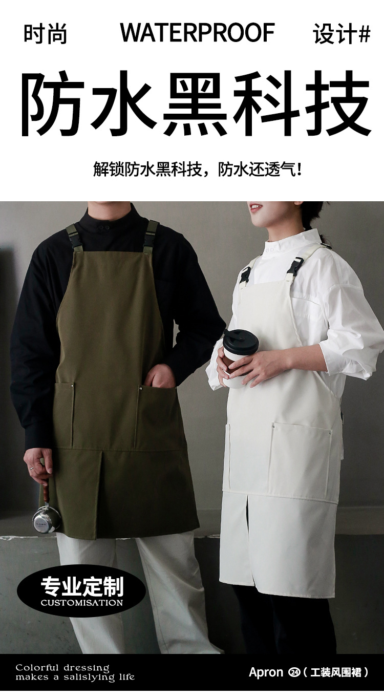 아마존 슬릿 방수 앞치마 커피 레스토랑 캔버스 앞치마 순수 코튼 주방 로고 작업복스토어 가기