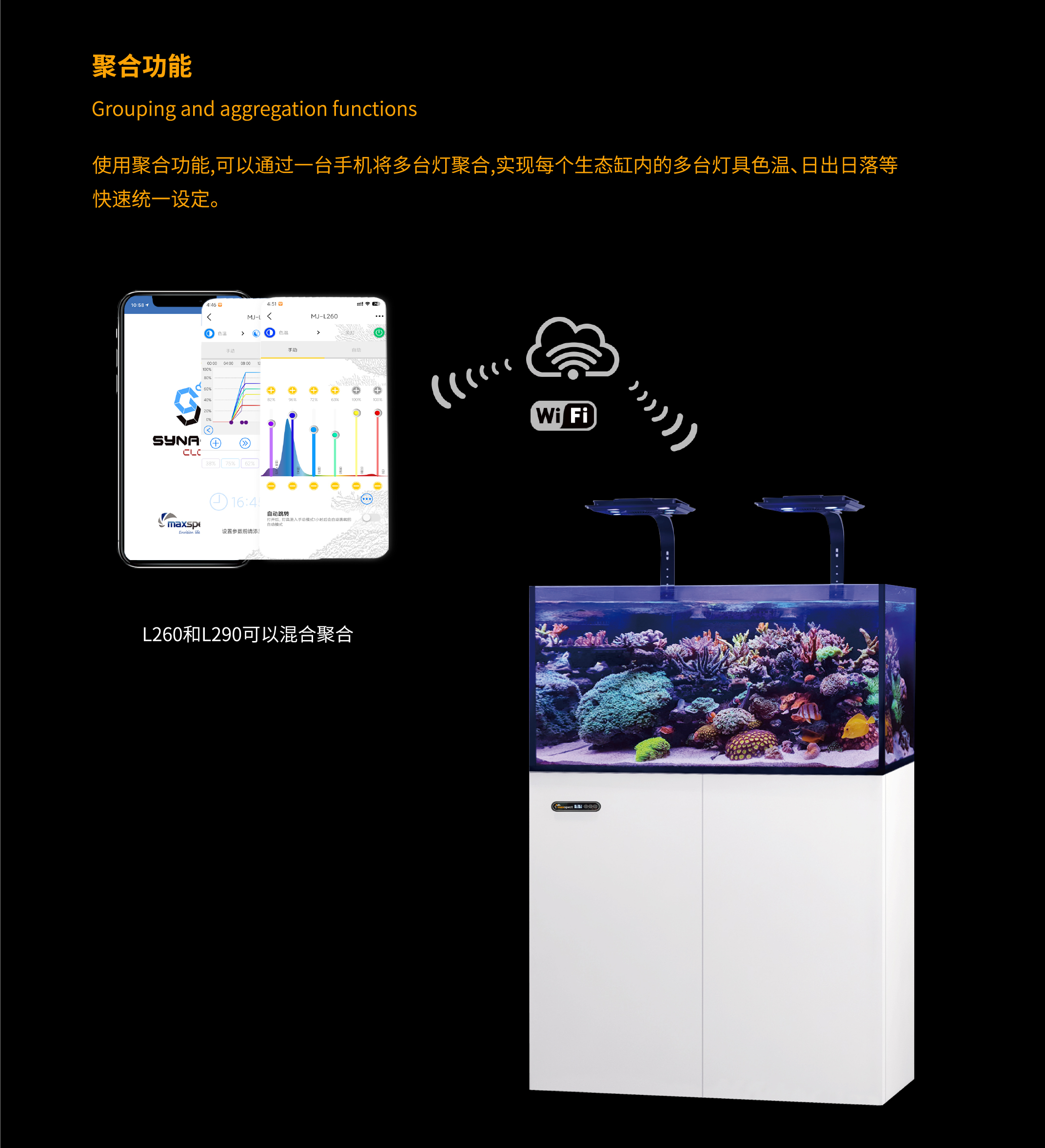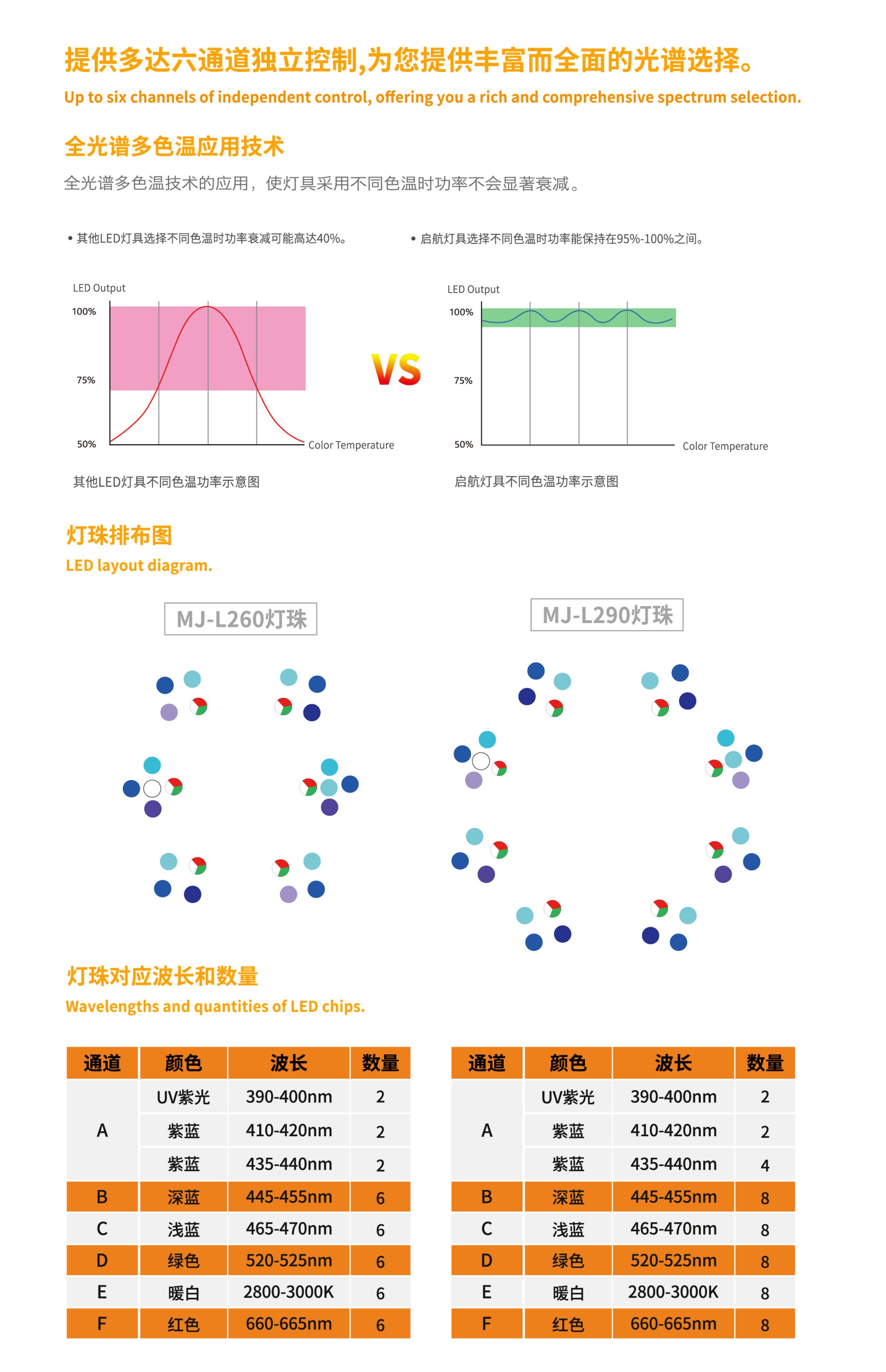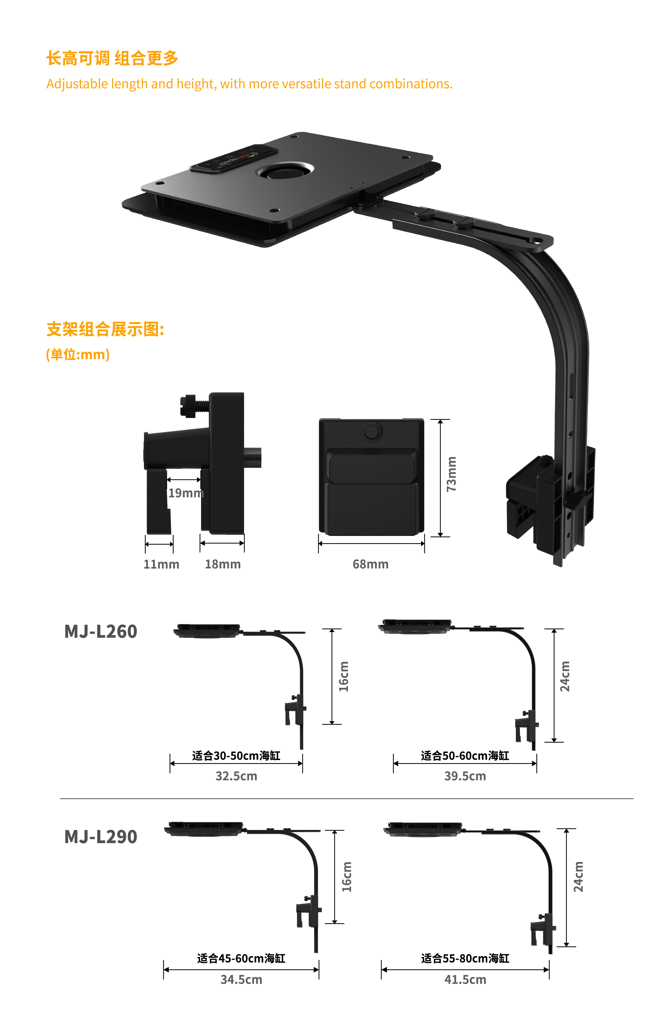 Meiguang 새로운 항해 MJ-L290 L260 바다 탱크 램프 산호 램프 LED 전체 스펙트럼 해수 램프 일출 및 일몰스토어 가기