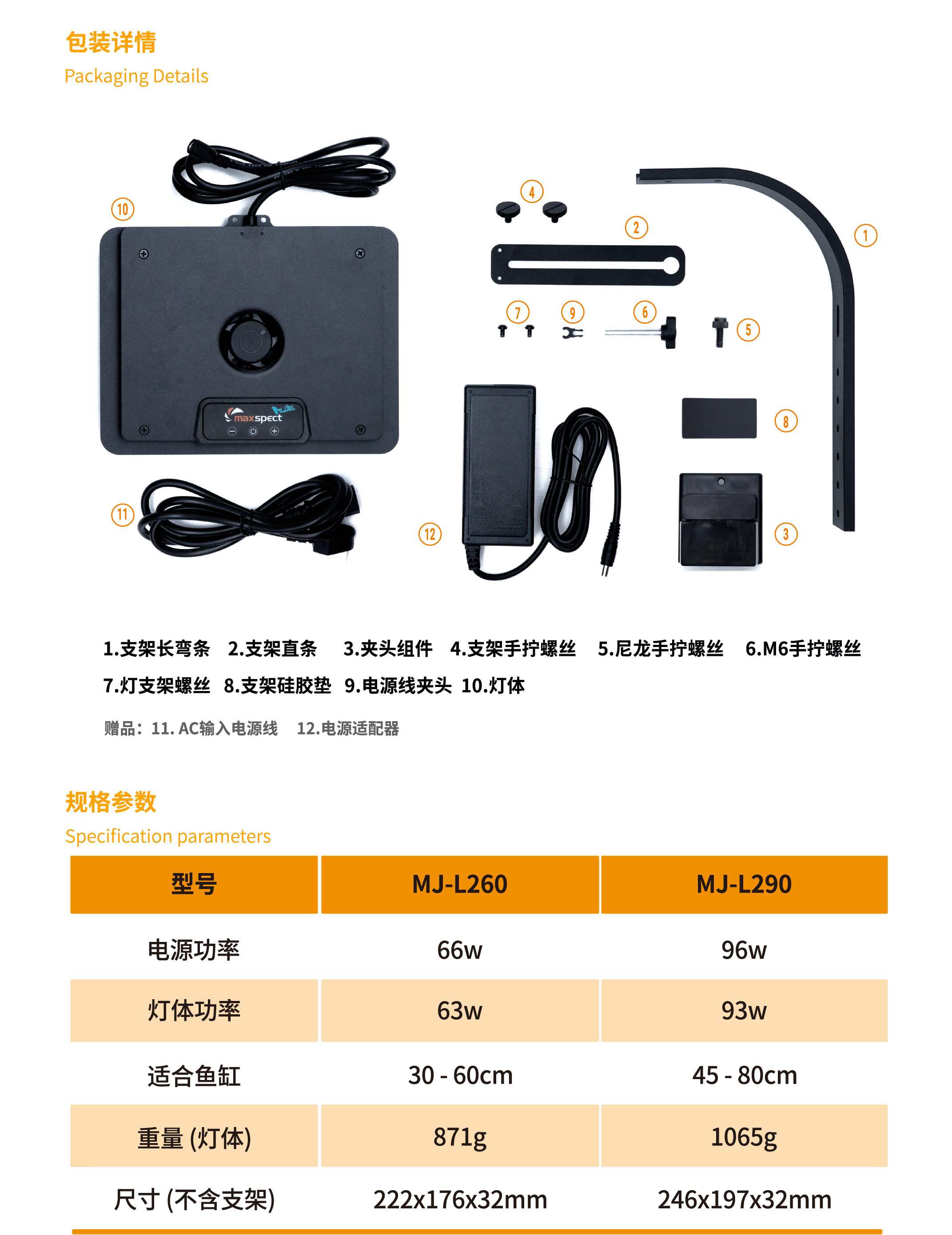 Meiguang 새로운 항해 MJ-L290 L260 바다 탱크 램프 산호 램프 LED 전체 스펙트럼 해수 램프 일출 및 일몰