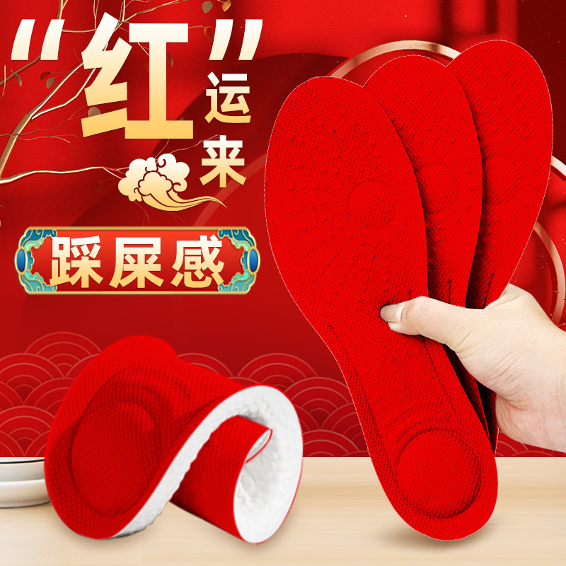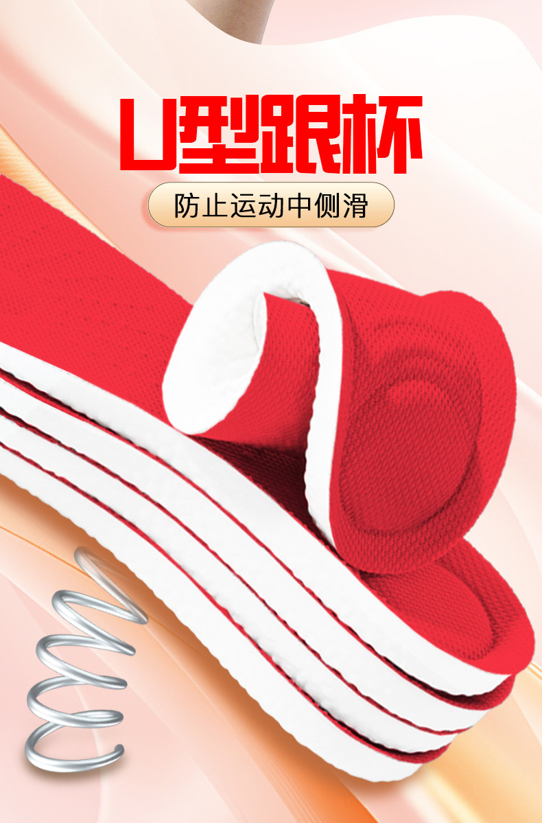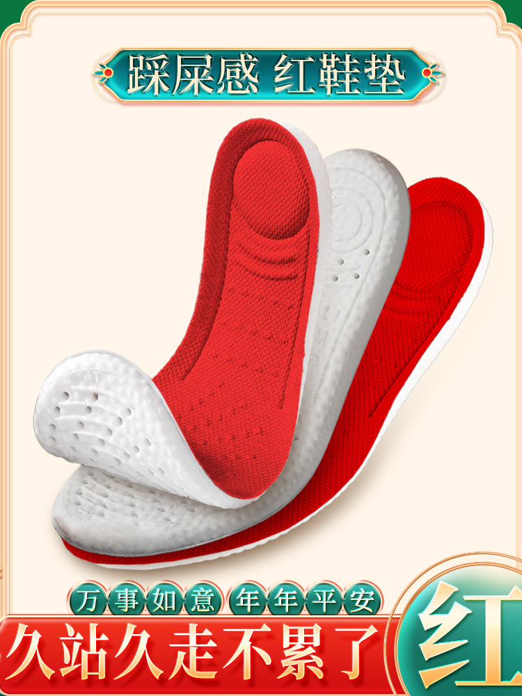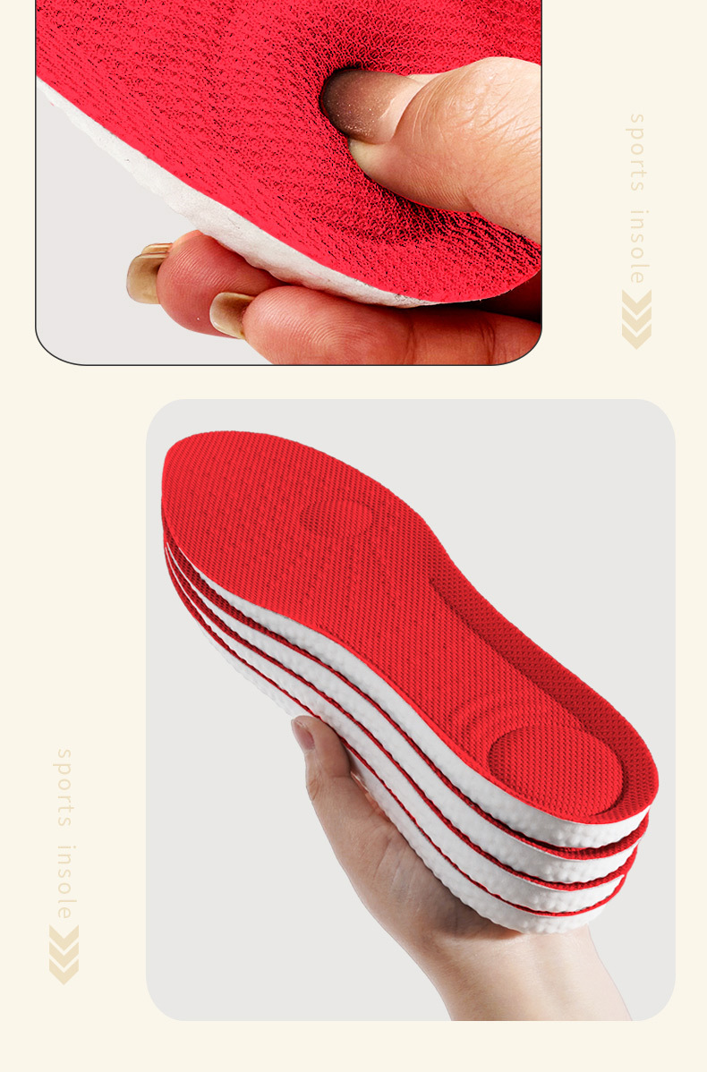 남녀공용 레드 정품 쿠션 깔창, 편안하고 고탄력, 충격흡수, 통기성, 운동용스토어 가기