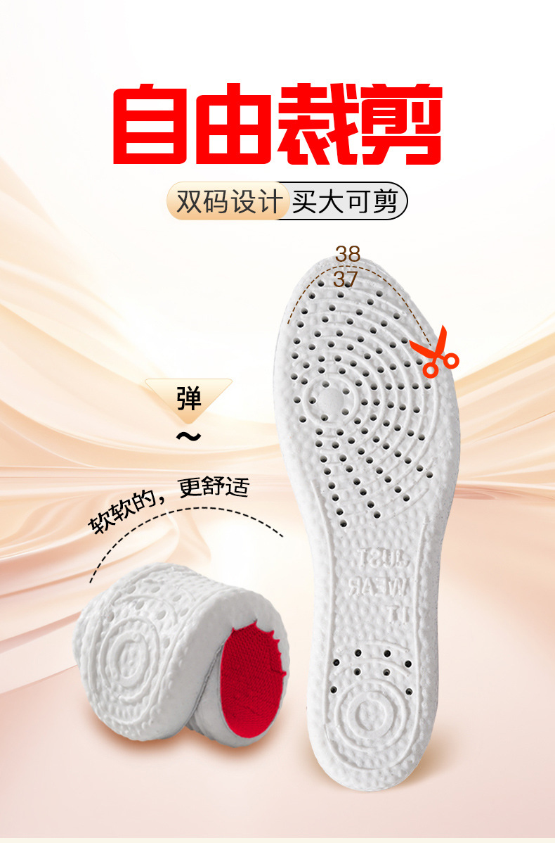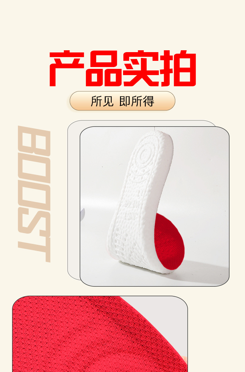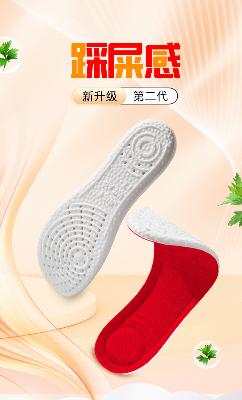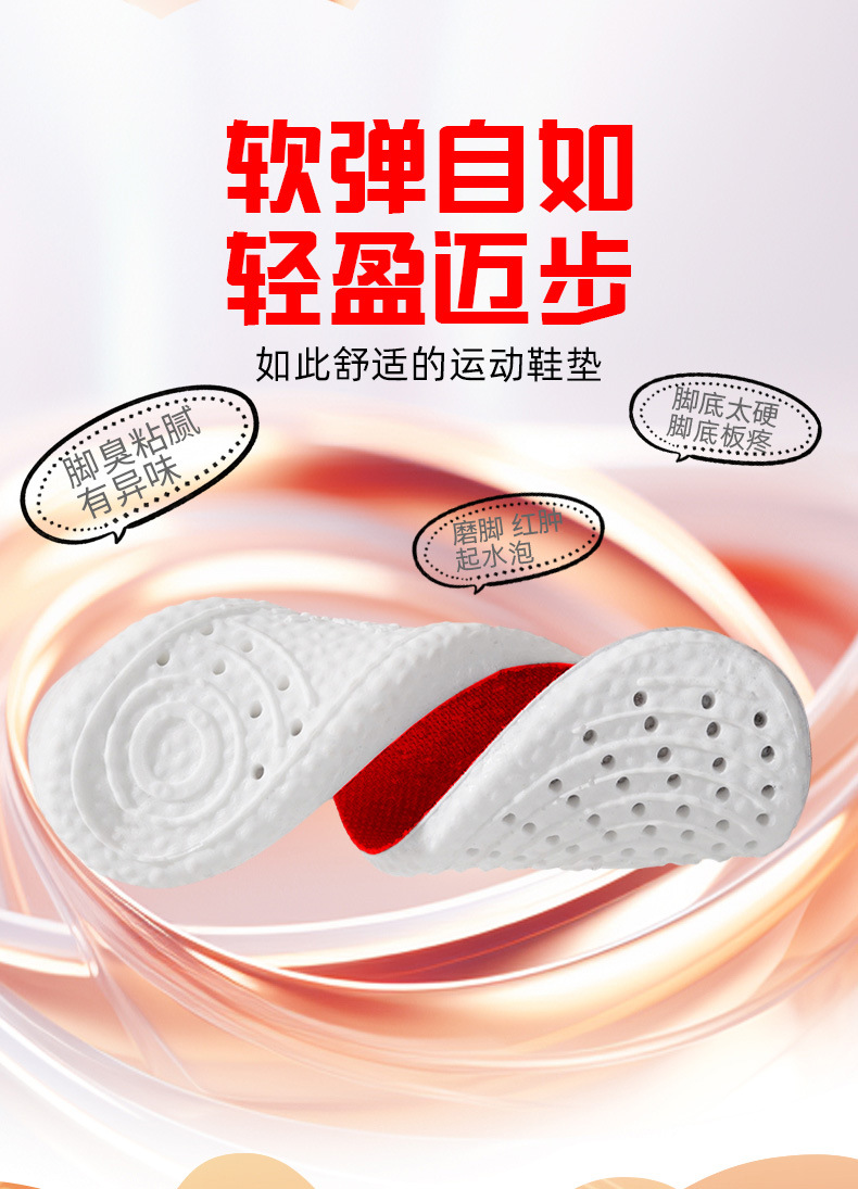 남녀공용 레드 정품 쿠션 깔창, 편안하고 고탄력, 충격흡수, 통기성, 운동용스토어 가기