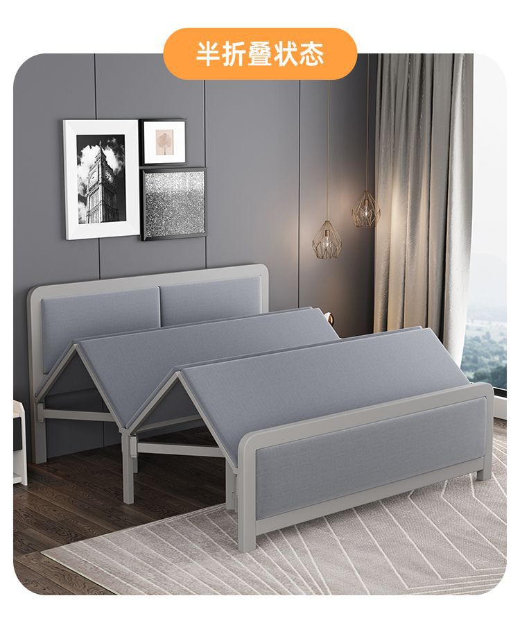 • 1.2M 회색 접이식 침대 프레임 + 회색 침대 표면 + 갈색 매트