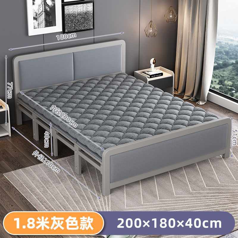 접이식 침대 점심 휴식 렌탈 하우스를위한 더블 나무 침대 간단한 단일 성인 렌탈 하우스 강화 두꺼운 연약한 철 침대스토어 가기