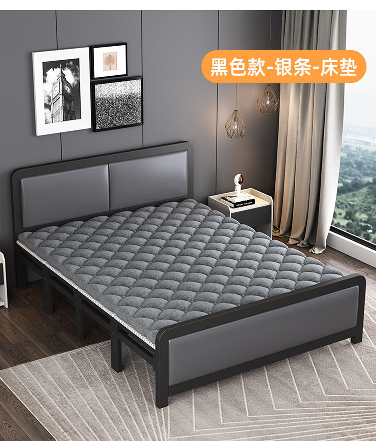 • 1.2M 검정색 접이식 침대 프레임 + 실버 스트립 침대 표면