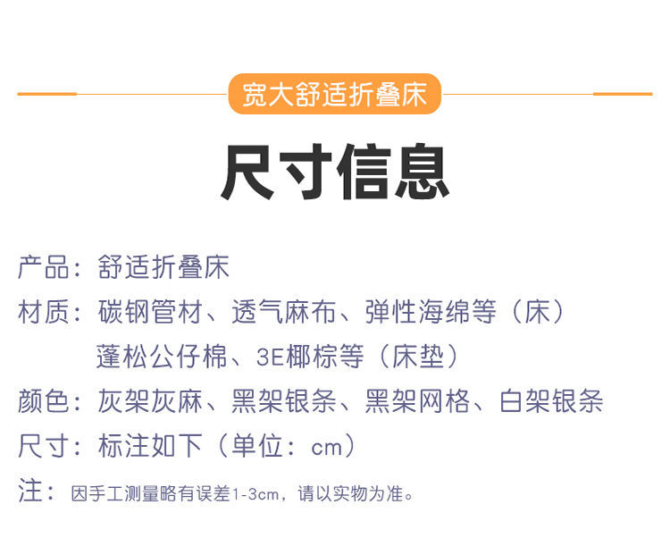 • 1M 흰색 접이식 침대 프레임 + 실버 스트립 침대 표면 + 브라운 쿠션
