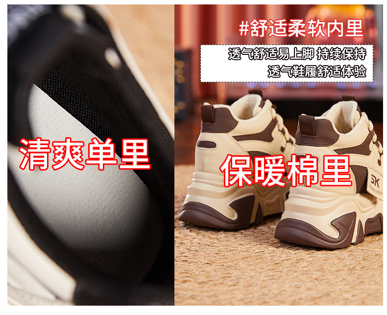 겨울 새로운 편안한 내부 높이 증가 여성 신발 캐주얼 대학 스타일 토레 신발 두꺼운 단독 기모 학생들을위한 올 매치스토어 가기