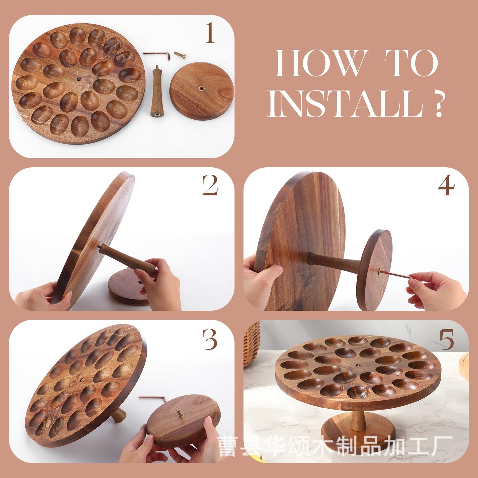 나무 높은 다리 양면 트레이 파티 휴일 케이크 스낵 디스플레이 플레이트 식탁 계란 스플릿 플레이트 서빙 플레이트스토어 가기