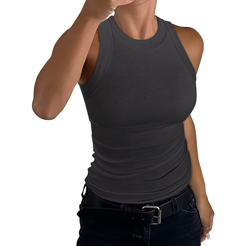 2024 유럽과 미국의 국경 간 아마존 독립 역 여름 여성 갈비뼈 조끼 크루 넥 슬림 핏 I 자형 여성 조끼스토어 가기