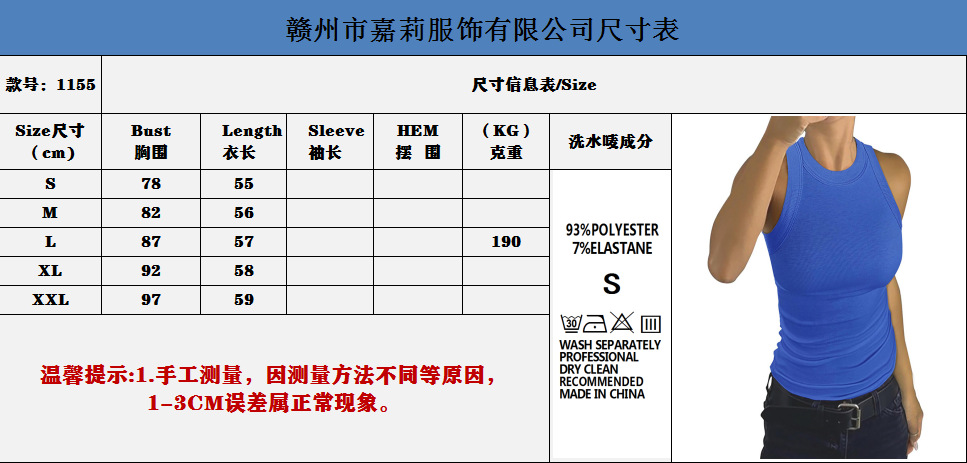 2024 유럽과 미국의 국경 간 아마존 독립 역 여름 여성 갈비뼈 조끼 크루 넥 슬림 핏 I 자형 여성 조끼