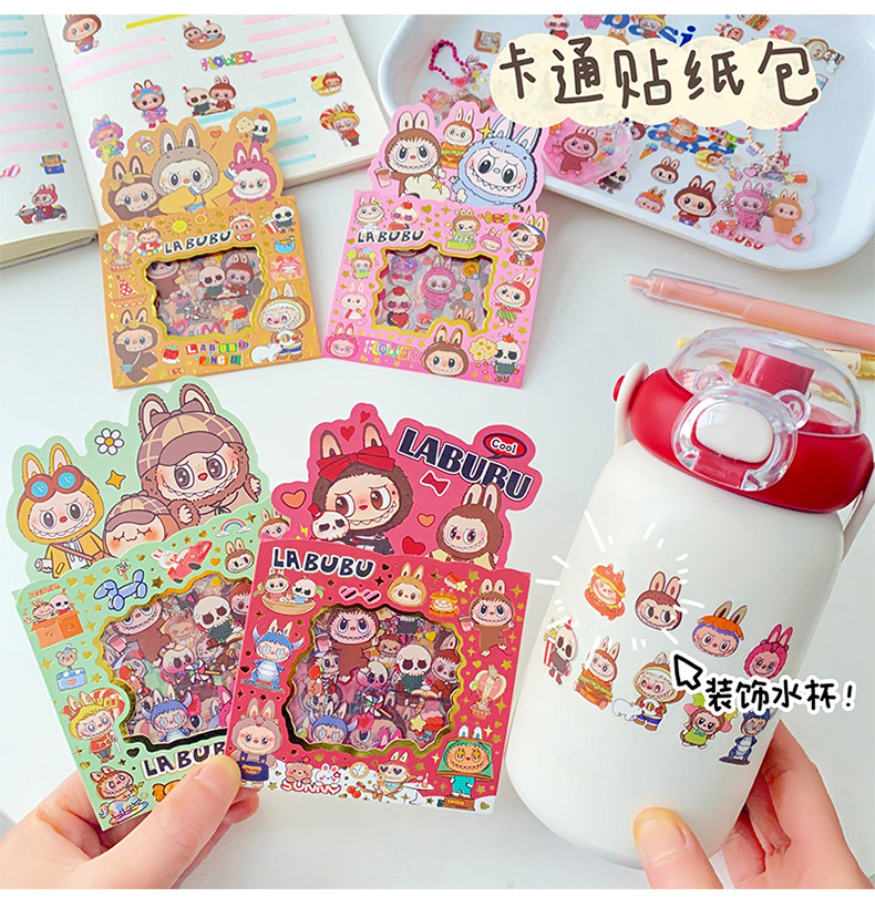 귀여운 만화 스티커 팩 5개 투명 방수 PET 스티커 팩 DIY 핸드북 장식 스티커 재료 팩 도매스토어 가기