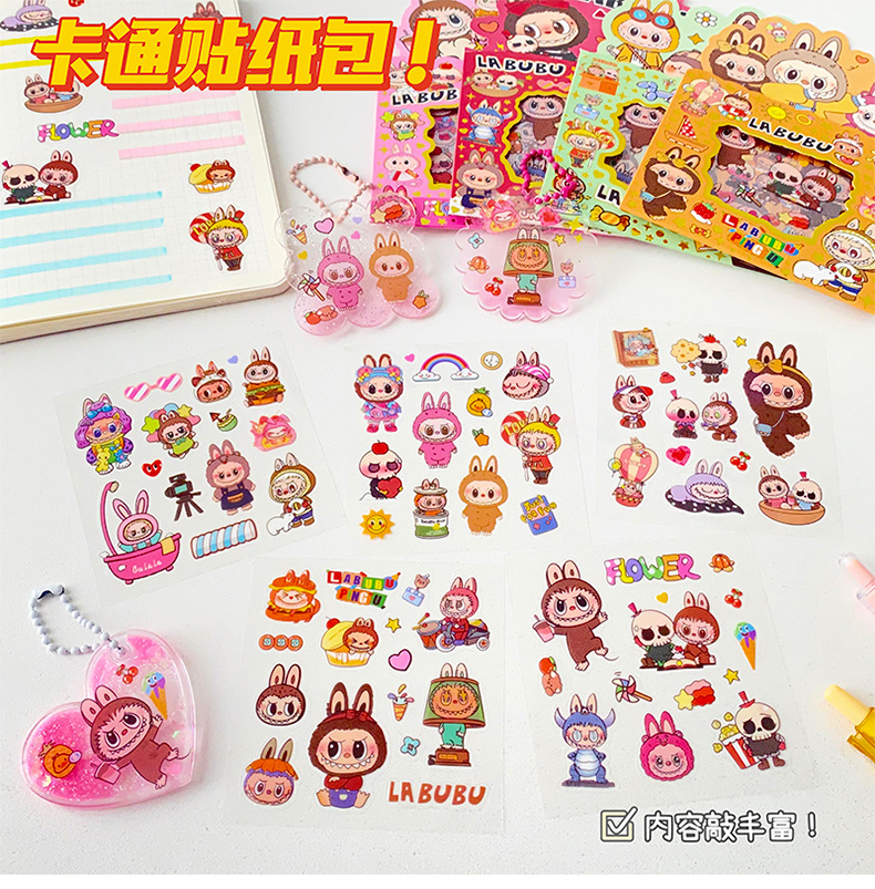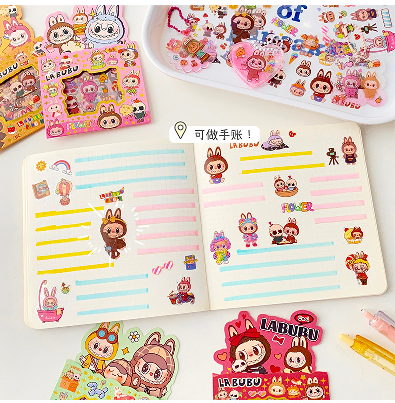 귀여운 만화 스티커 팩 5개 투명 방수 PET 스티커 팩 DIY 핸드북 장식 스티커 재료 팩 도매