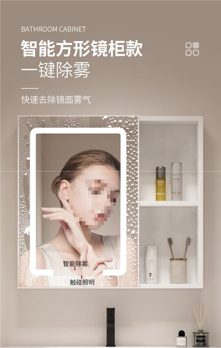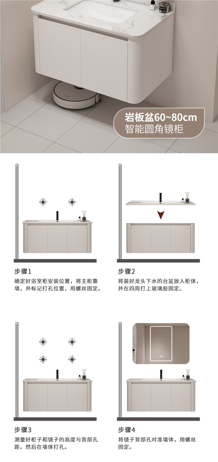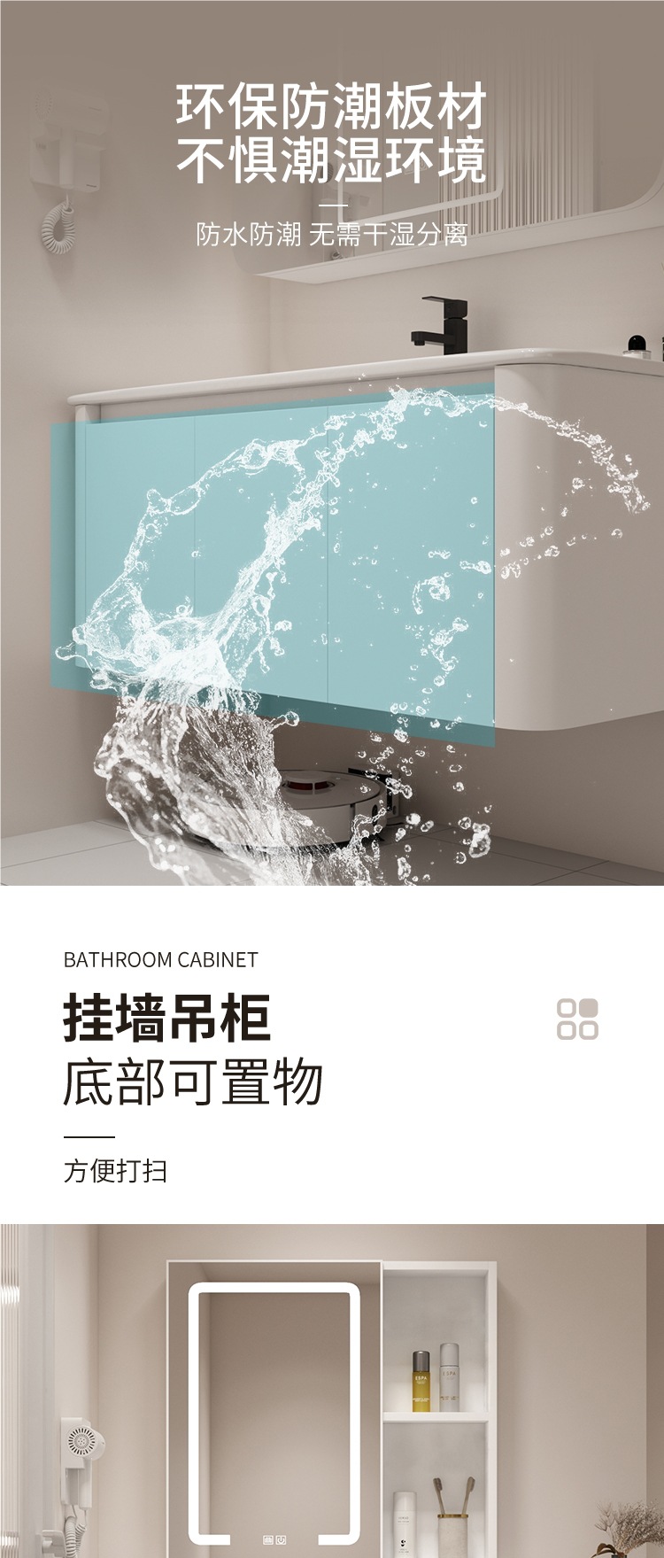 • 크림 화이트 81CM 세라믹 일체형 세면대 + 스마트 라운드 코너 거울 캐비닛
