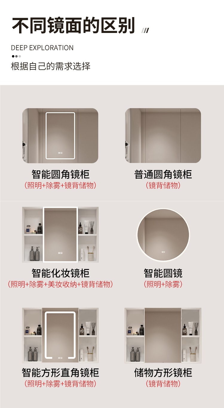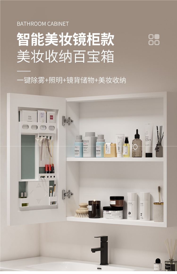 • 크림 화이트 101CM 세라믹 일체형 세면대 + 스마트 라운드 코너 거울 캐비닛