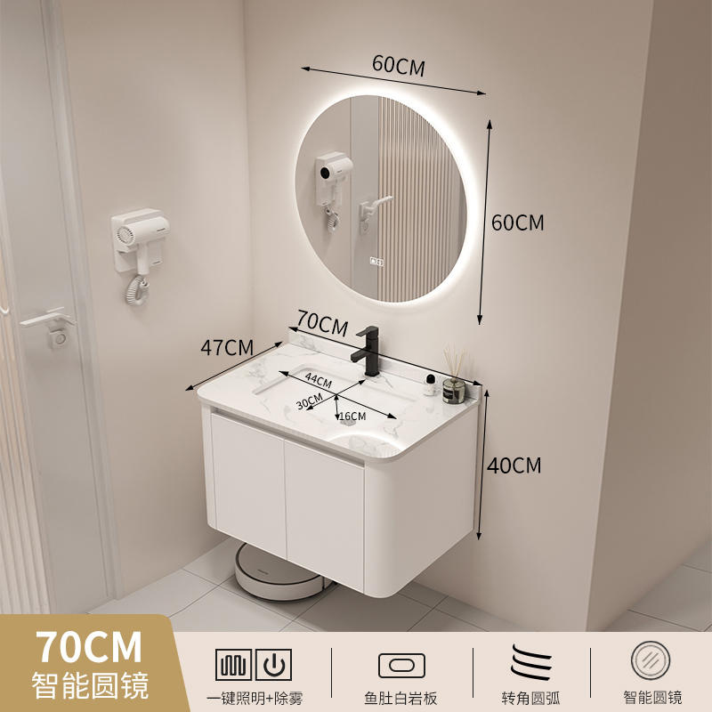• 크림 화이트 70CM 피쉬 벨리 화이트 슬레이트 세면대 + 스마트 라운드 코너 거울 캐비닛