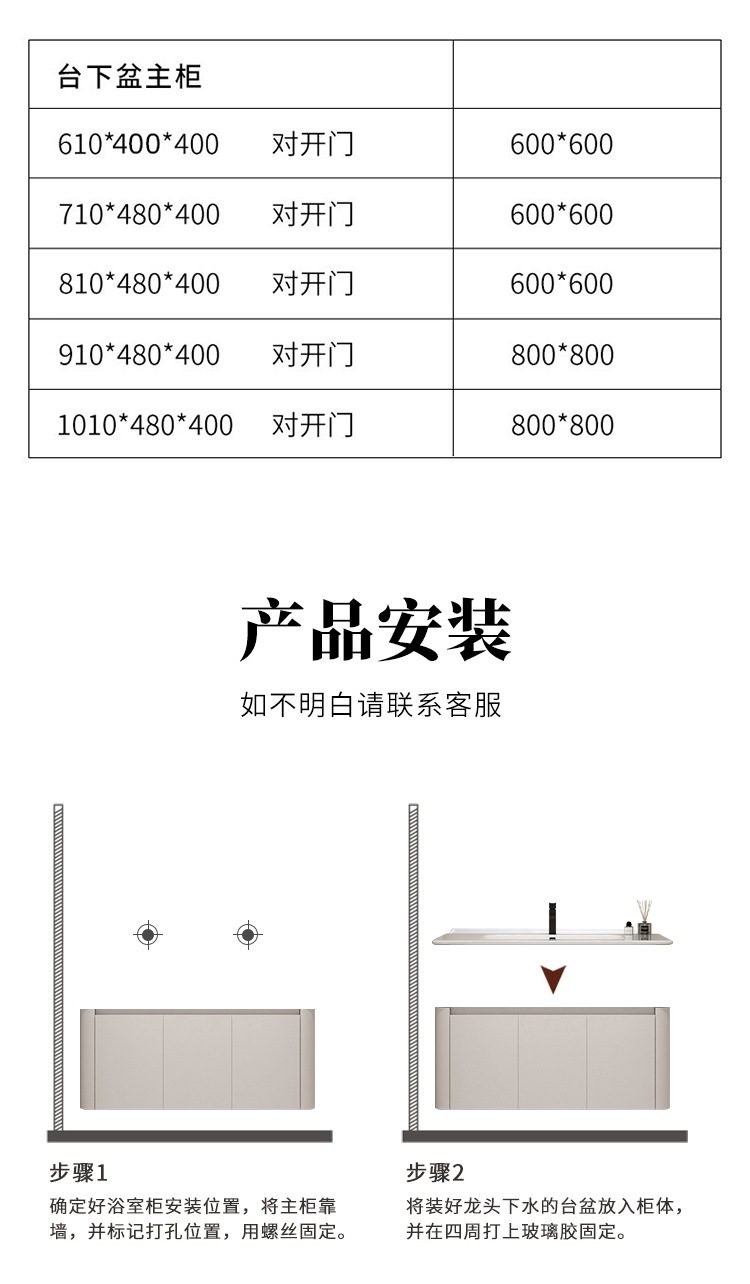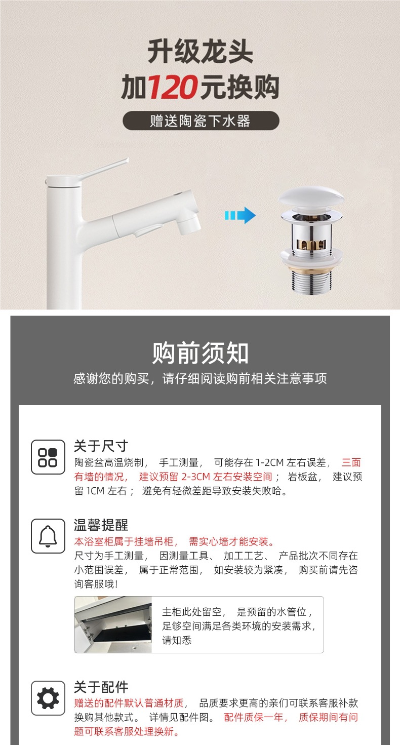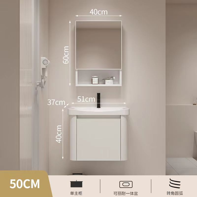 • 크림 화이트 50CM 세라믹 일체형 세면대 + 수납 거울 캐비닛