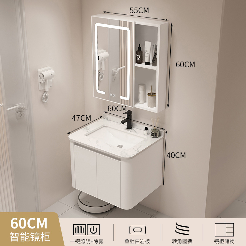• 크림 화이트 60CM 피쉬 벨리 화이트 슬레이트 세면대 + 스마트 거울 캐비닛
