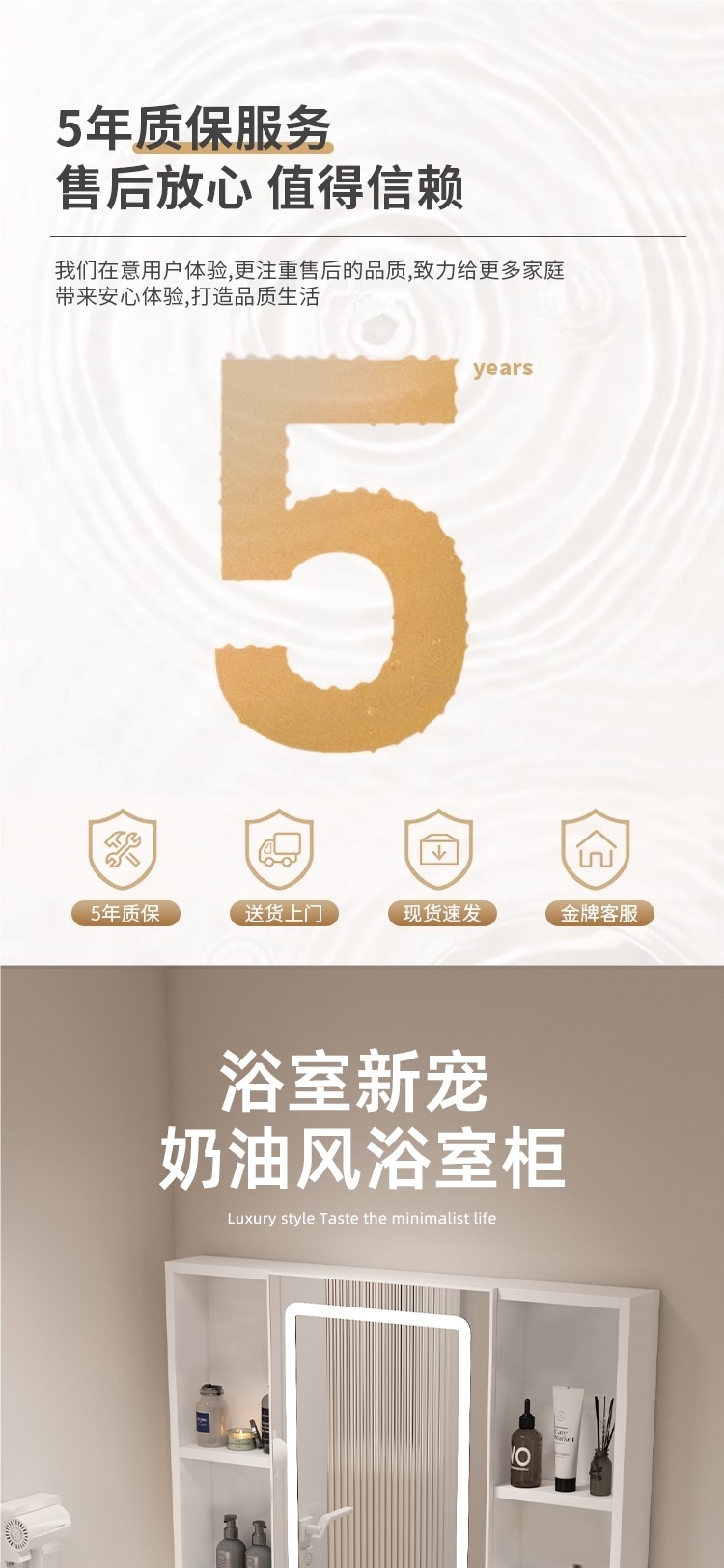 • 크림 화이트 81CM 세라믹 일체형 세면대 + 수납 거울 캐비닛