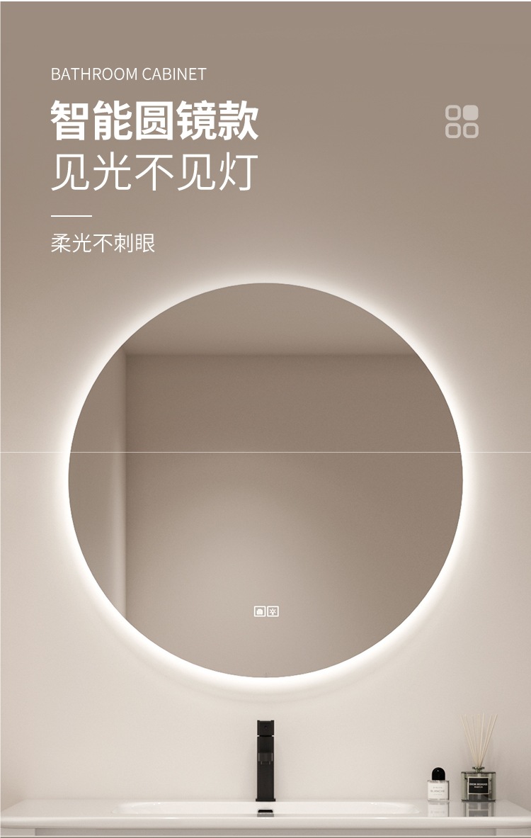 • 크림 화이트 81CM 세라믹 일체형 세면대 + 스마트 원형 거울