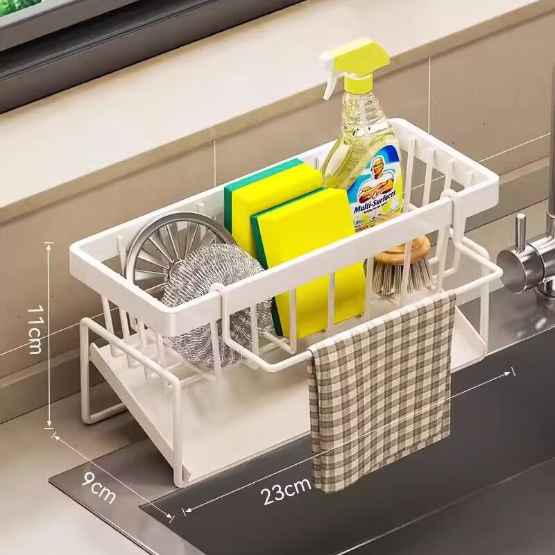 • 주방 - 싱크대 배수 수납선반, 스펀지선반 [화이트] 막대가 있는 테이블