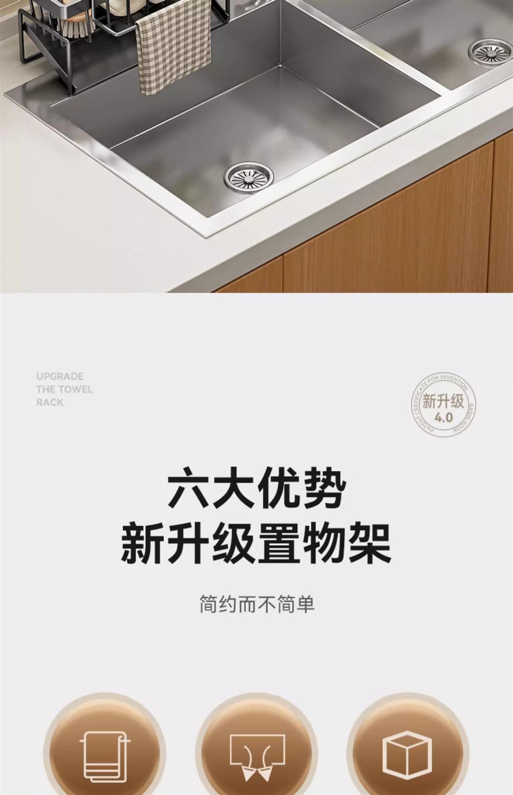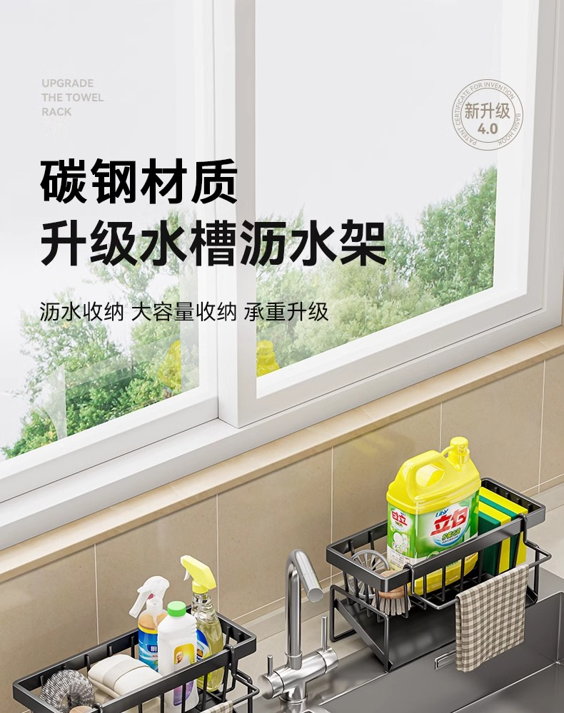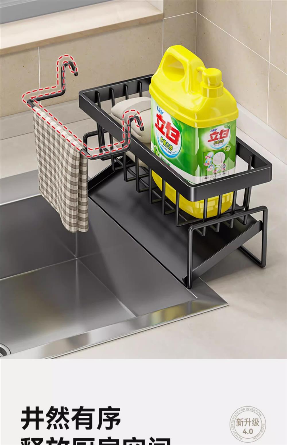 • 주방-싱크대 배수 수납선반, 블랙-럭셔리 모델(봉 포함)