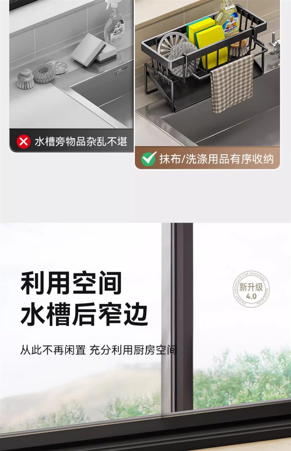 주방 걸레걸이 무타공 수납선반 벽걸이형 가정용 배수 수납선반 물걸이 바구니 용품