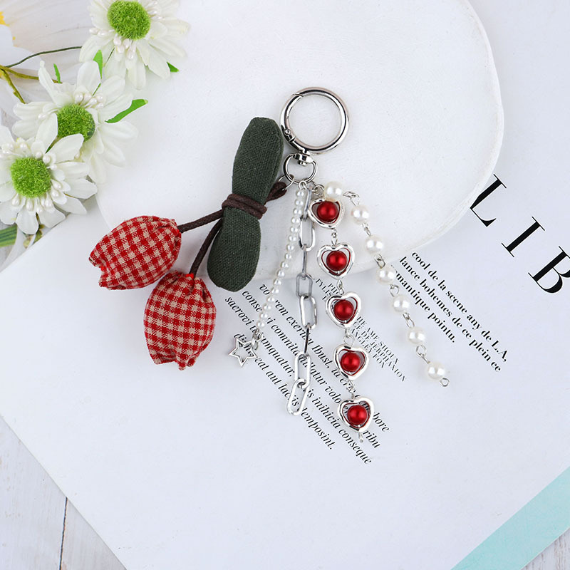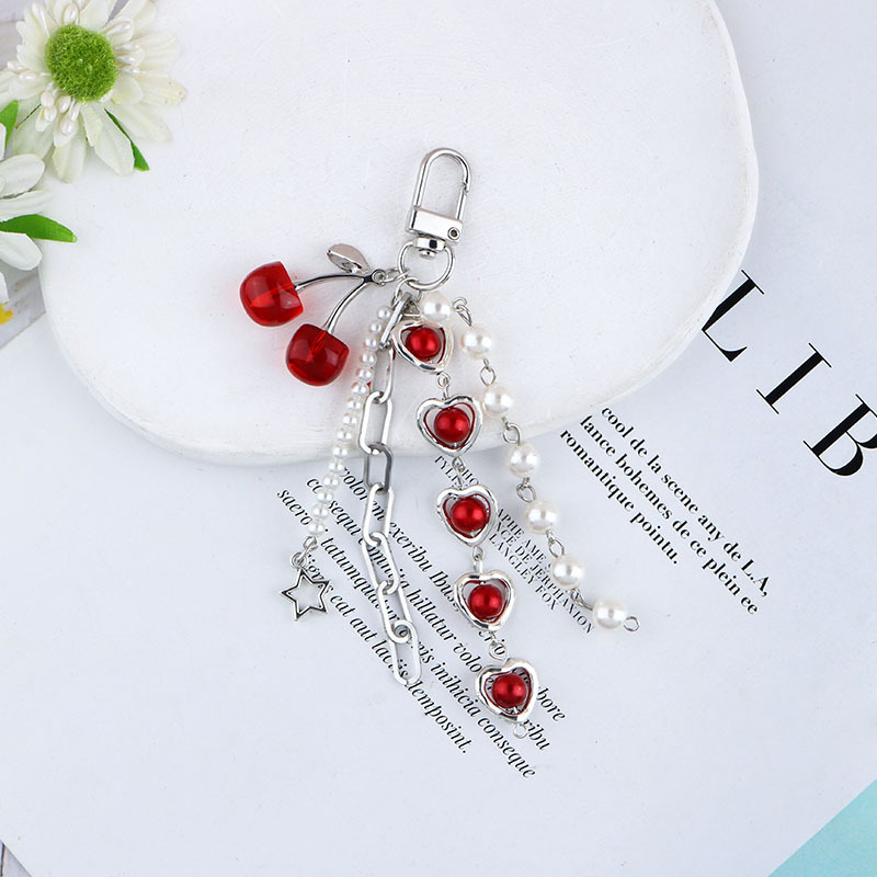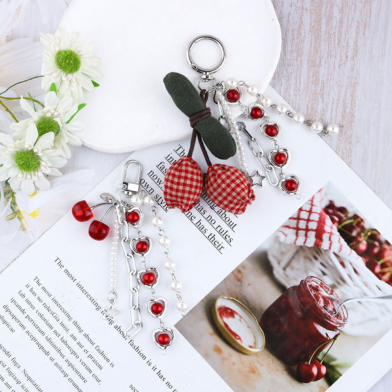 일본의 새로운 패브릭 체리 수지 사랑 진주 펜던트 여성용 가방 쥬얼리 키 체인 올매치 교수형 쥬얼리