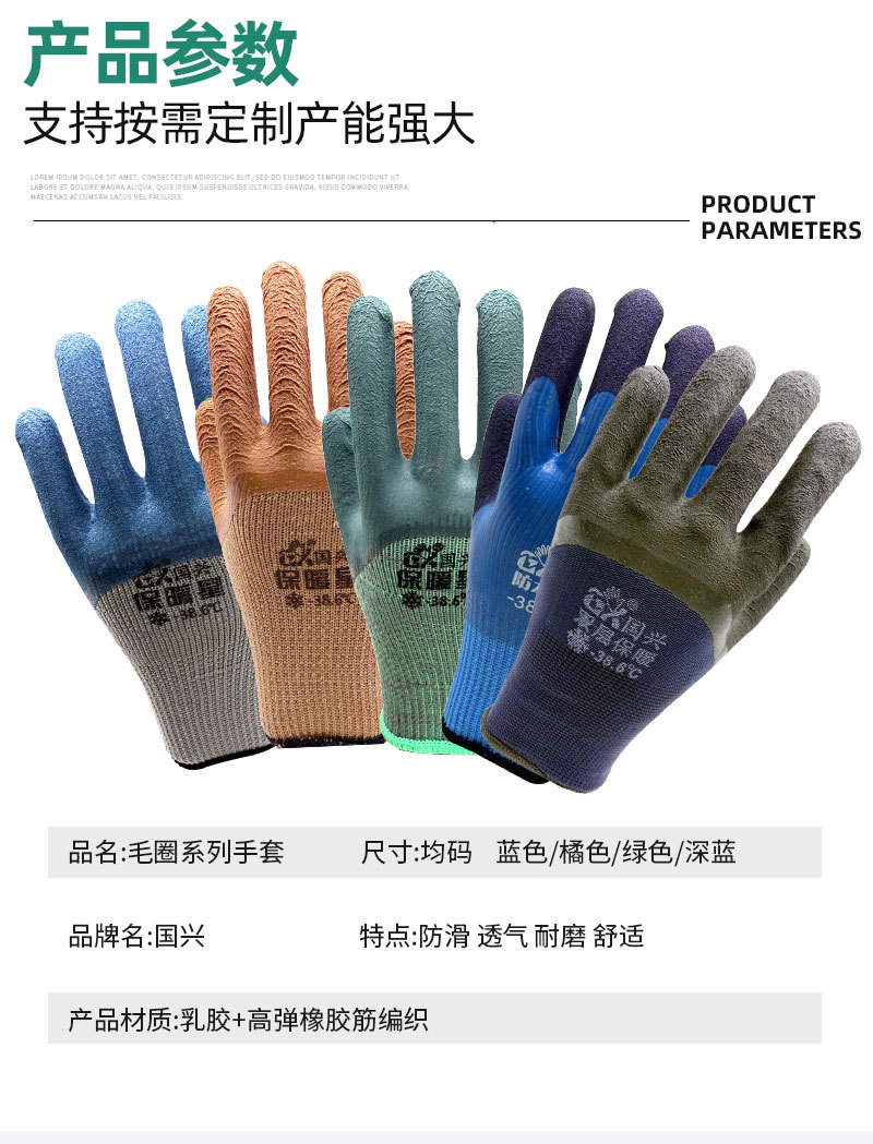 타이어 고무 내마모성 테리 두꺼운 따뜻한 장갑 미끄럼 방지 고무 담그는 건설 현장 냉장 취급 장갑스토어 가기