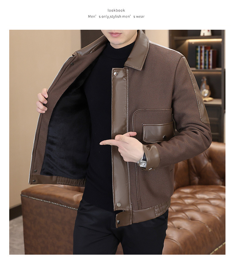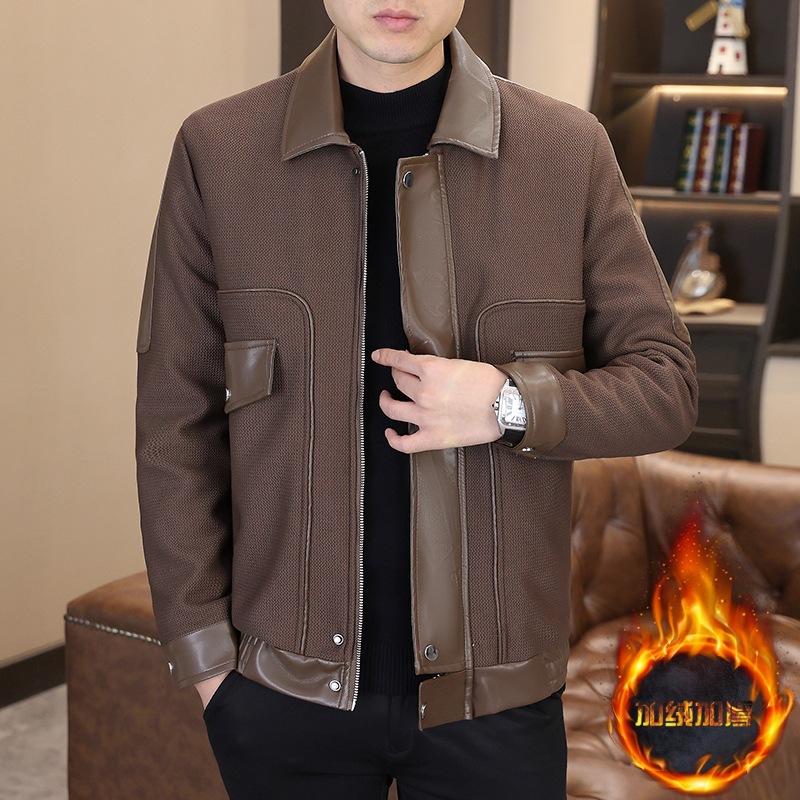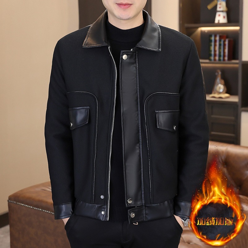 가죽 자켓 남자 2024 가을 겨울 새로운 한국 유행 잘 생긴 짧은 기모 두꺼운 모피 칼라 가죽 자켓