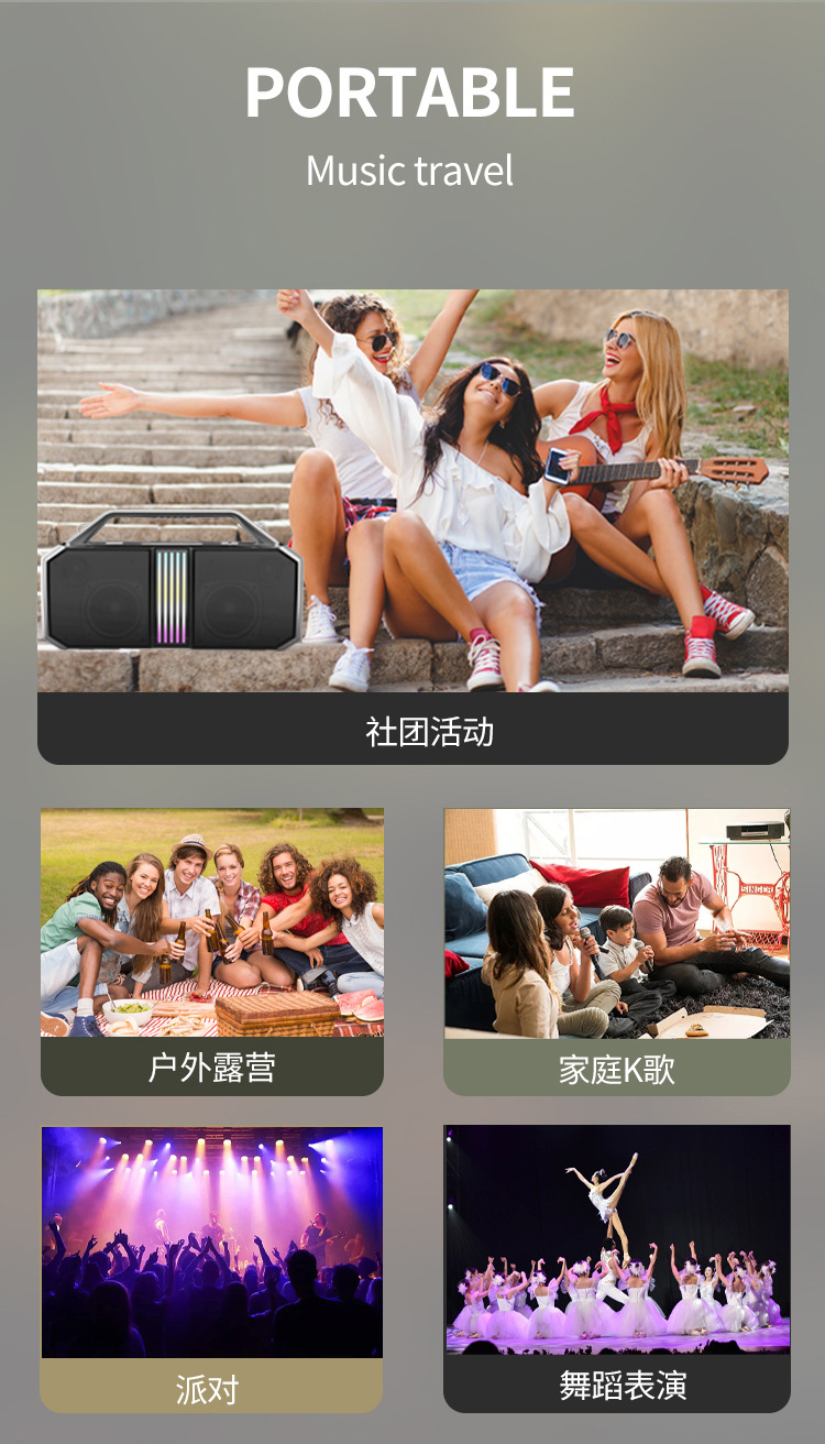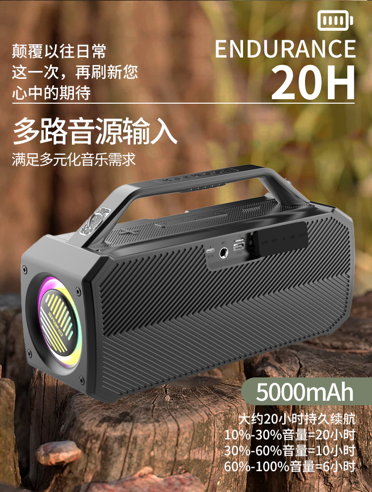 COM829100W 높은 전력 발광 서브 우퍼 블루투스 야외 무선 휴대용 오디오 하이 퀄리티 스피커