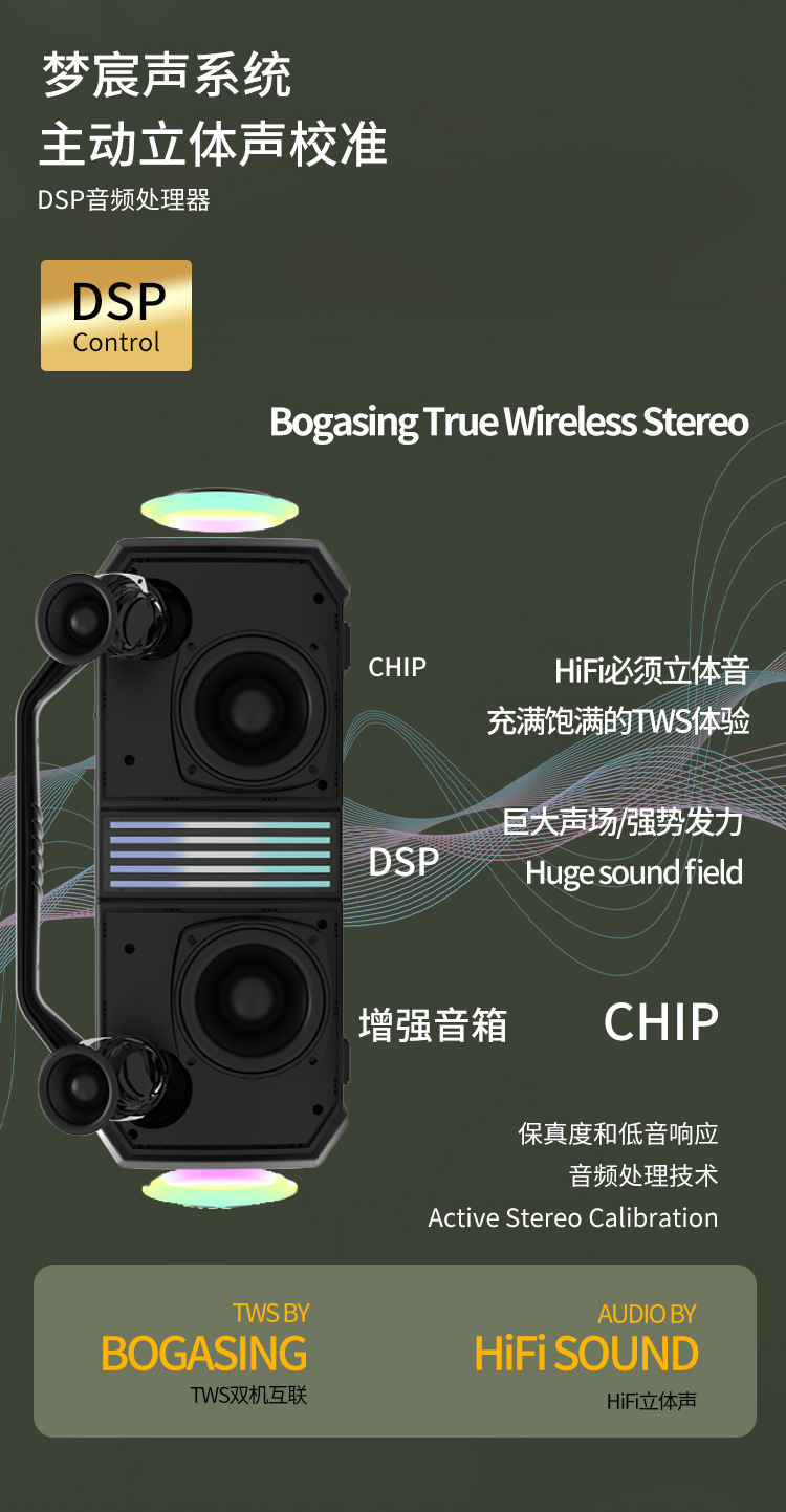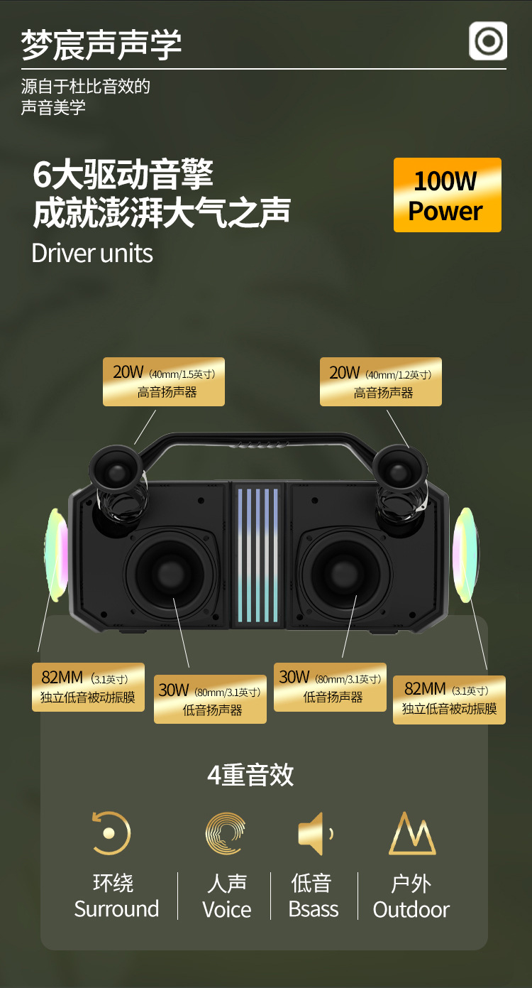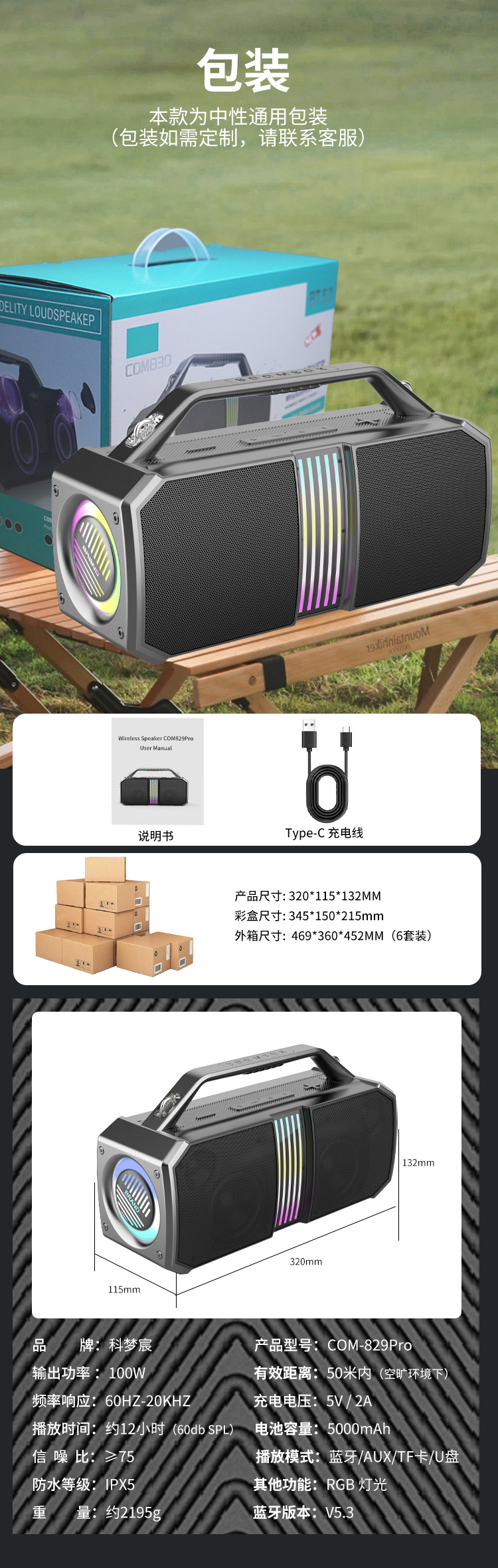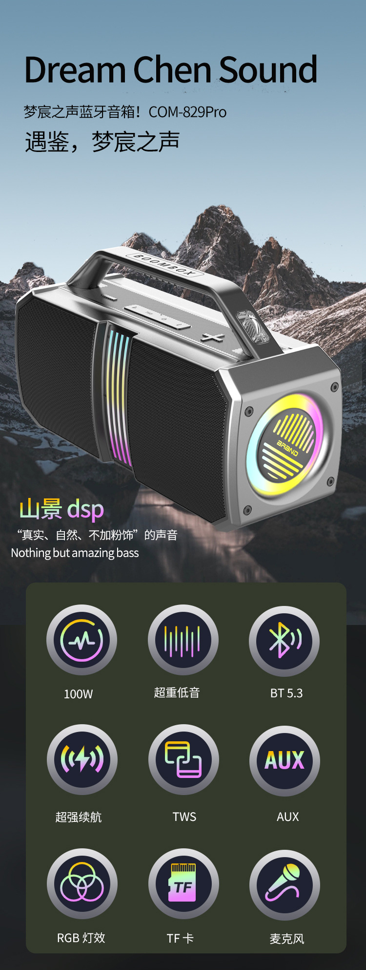 COM829100W 높은 전력 발광 서브 우퍼 블루투스 야외 무선 휴대용 오디오 하이 퀄리티 스피커스토어 가기
