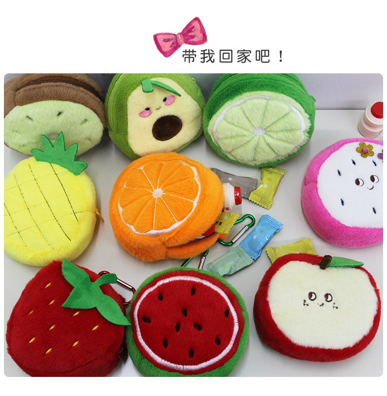 도매 귀여운 봉제 시뮬레이션 과일 동전 지갑 입 빨간 봉투 블루투스 헤드셋 데이터 케이블 잡화 저장 가방스토어 가기