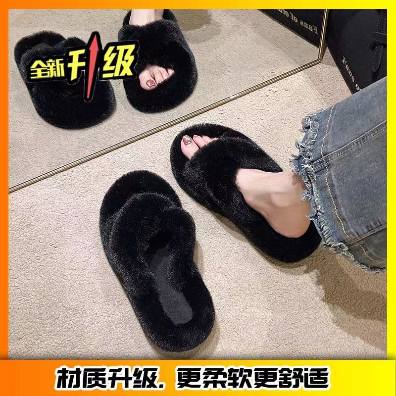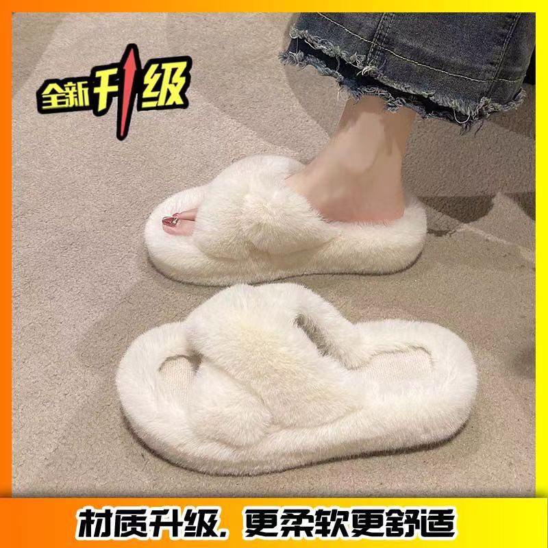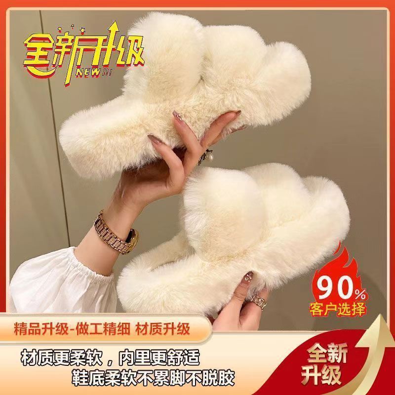 여성용 겉옷을위한 두꺼운 밑창 푹신한 슬리퍼 2024 새로운 겨울 작은 높이 요정 홈 면화 슬리퍼스토어 가기