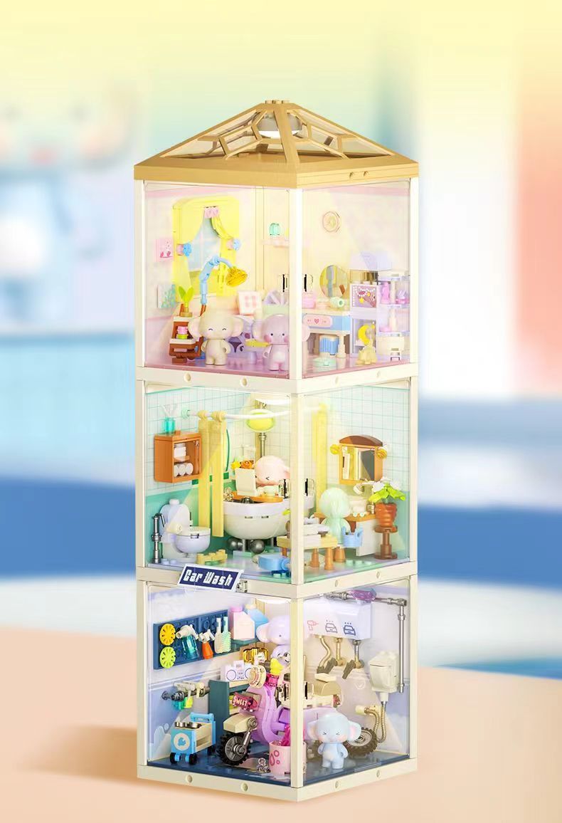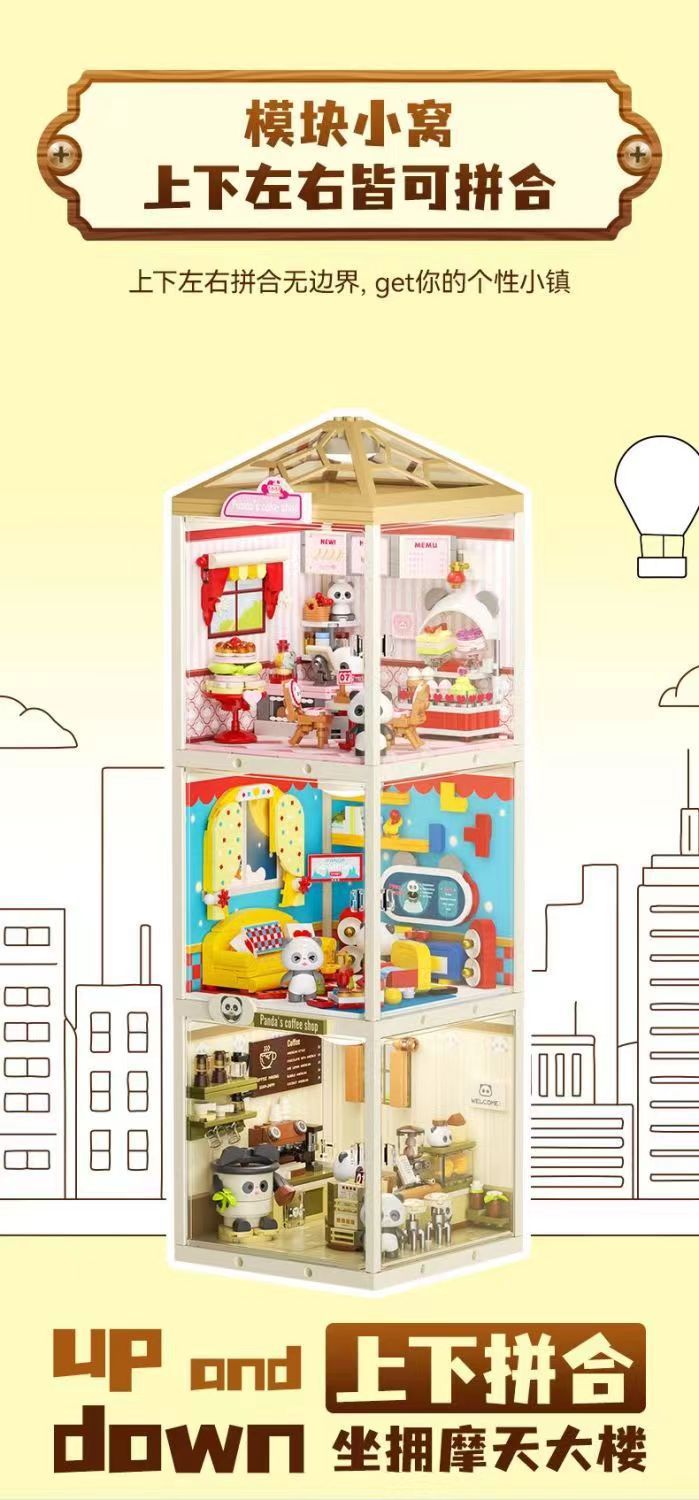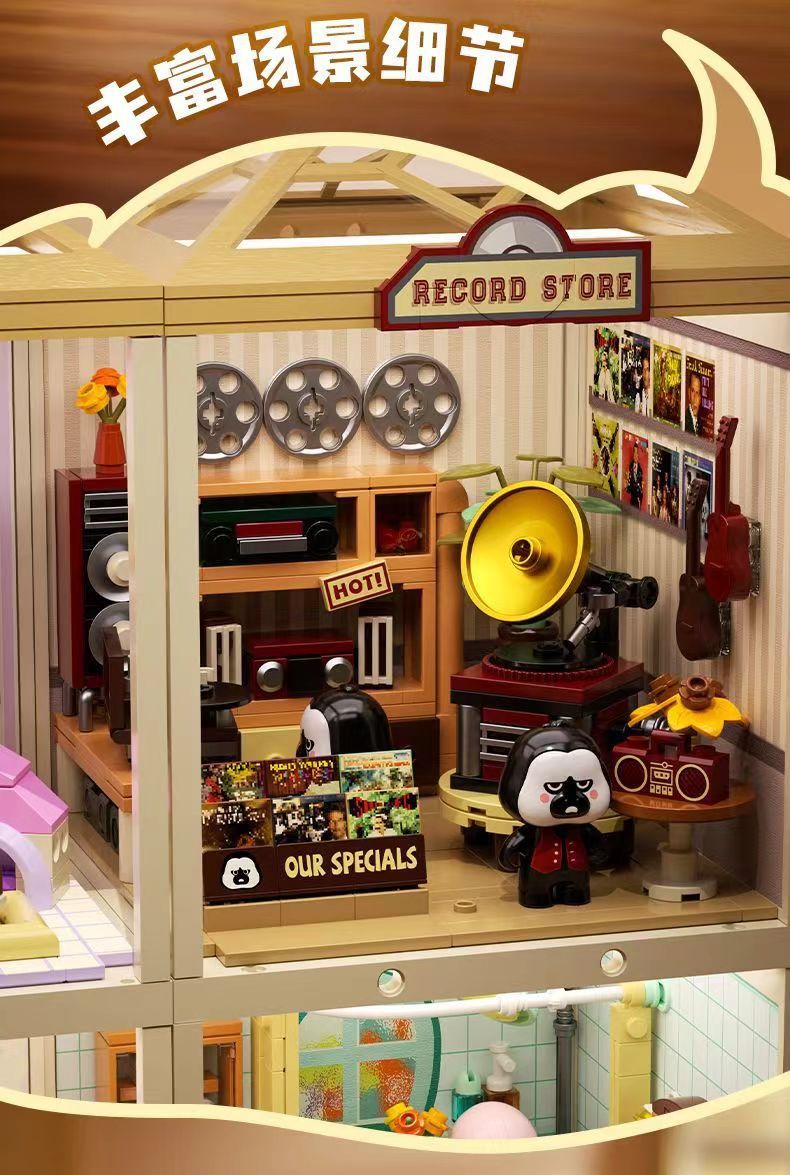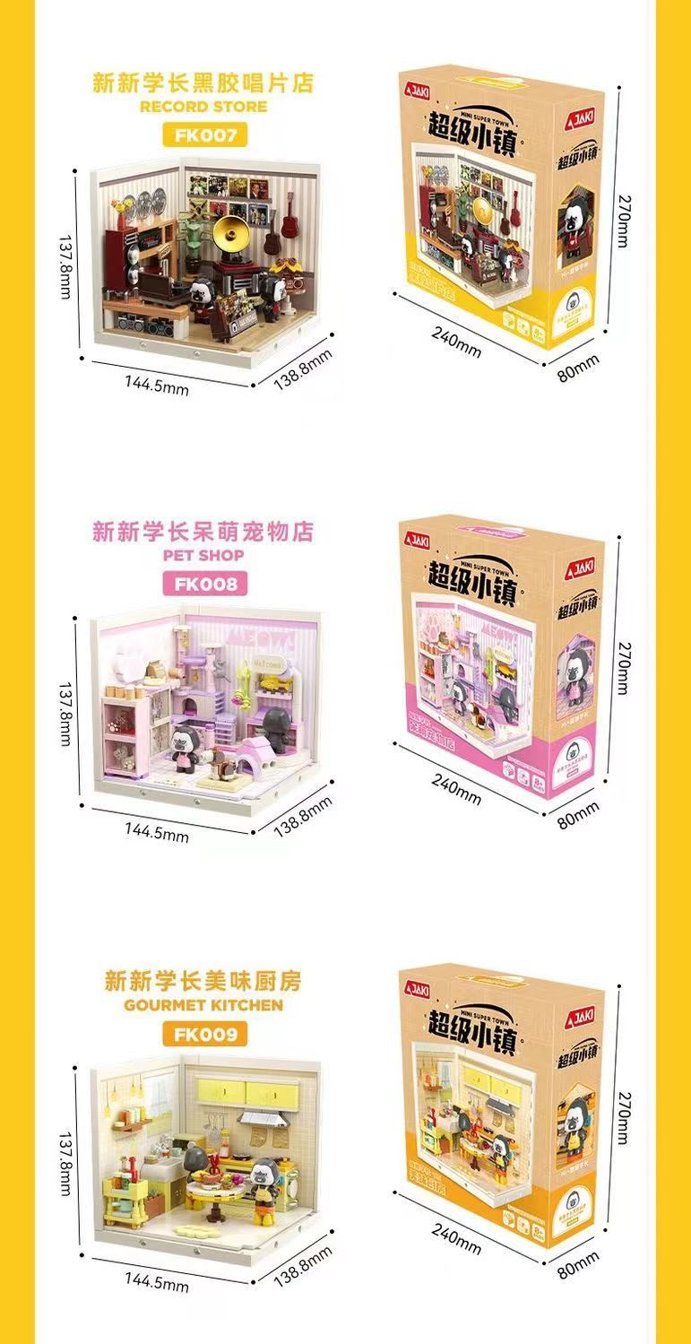 JAKI Jiaqi 빌딩 블록 슈퍼 타운 시리즈 어린이 교육 컬렉션 건물 장식품 장난감 생일 선물스토어 가기