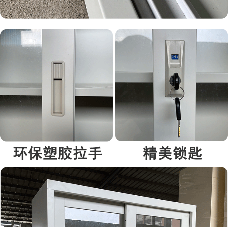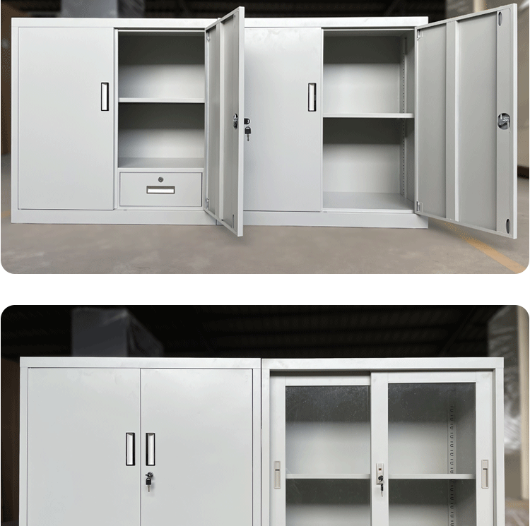 움직이는 문 파일 내각 사무실 철 내각 강철 서랍 유형 유리 문 바닥 캐비닛 슬라이딩 도어 잠금 반 낮은 캐비닛