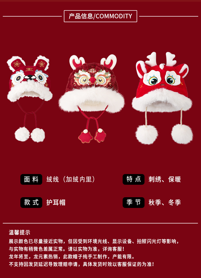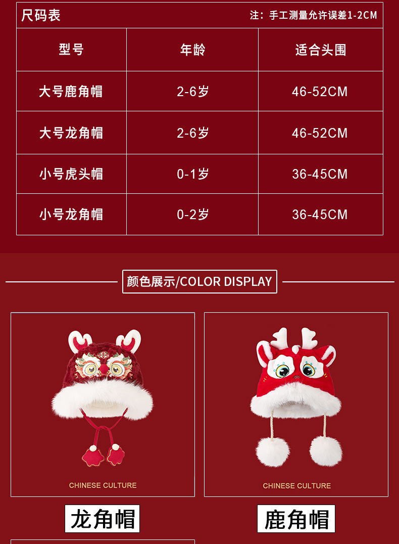 • Guoguo Dragon Hat-새해 스타일(2-12세)