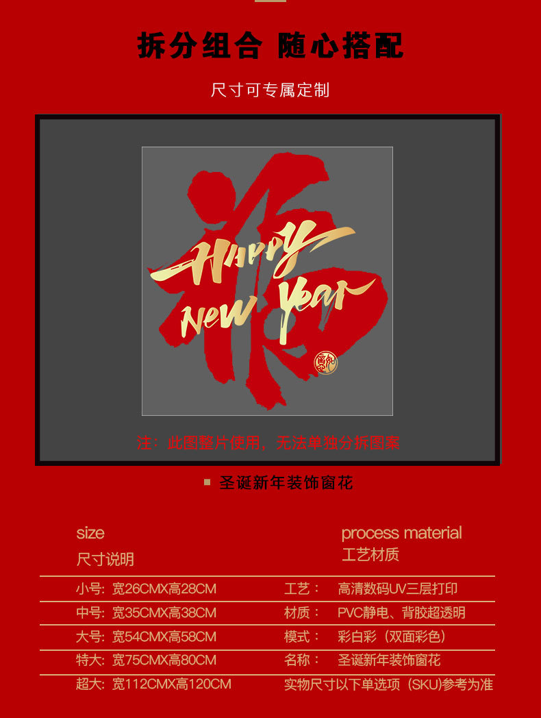 2026년 새해 장식 창문 장식 글자 스티커 유리문 스티커 설날 봄 축제 말의 해 장식 전자기 창문 스티커