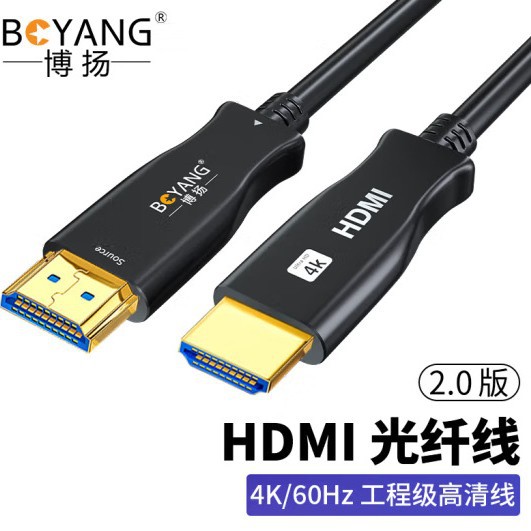 博扬 光纤HDMI线2.0版UHD 4K@60Hz发烧级HDR数字超高清线18G 4096*2160P工程连接线 40米 BY-HDMI2.0a-F40m*1*合格证
