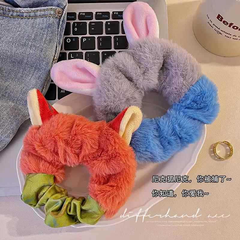 인터넷 유명한 봉제 가을과 겨울 대장 머리 반지 여성의 귀여운 만화 머리 밧줄 토끼 귀 머리 밧줄 2024 새로운 보석 머리 바인딩