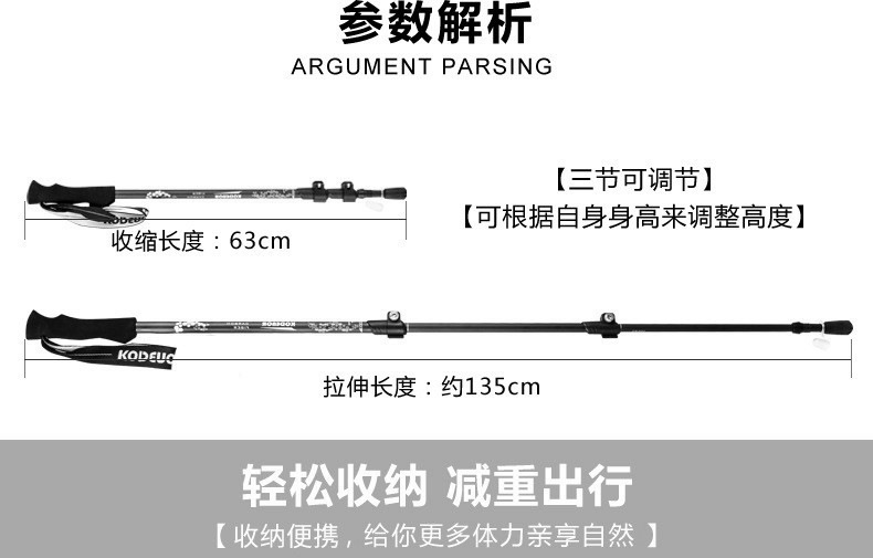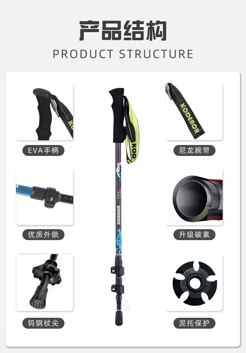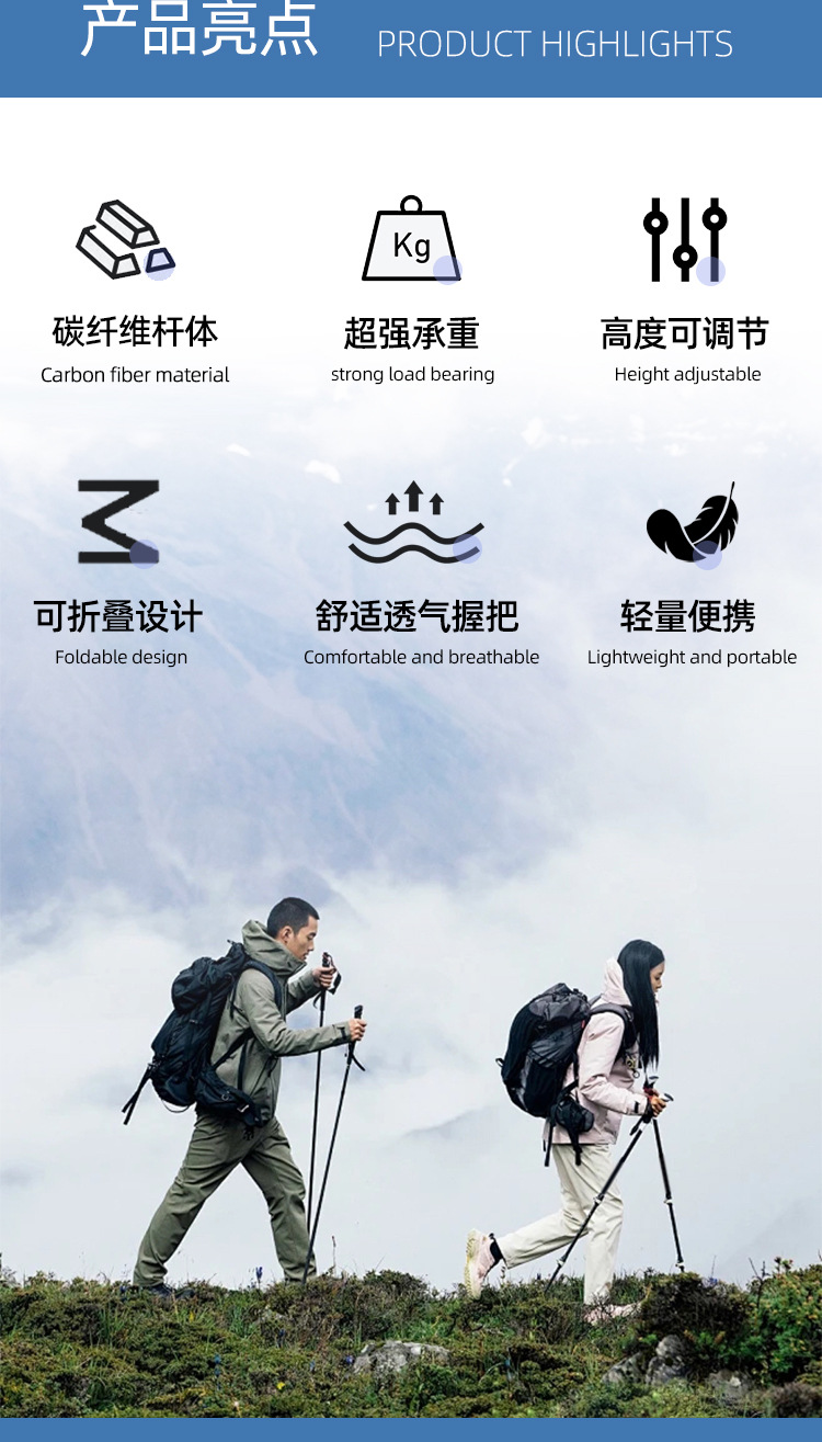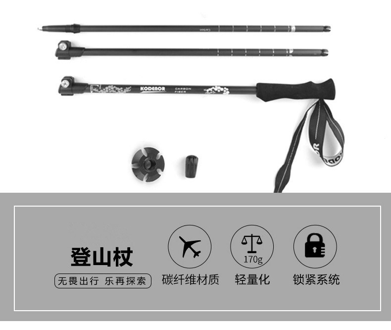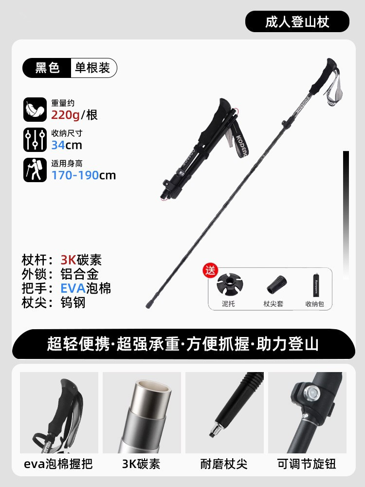 탄소 섬유 트레킹 스틱, 초경량 등산용 텔레스코픽 스틱, 3단 외부 잠금 노인 지팡이, 전문 야외 하이킹 지팡이스토어 가기