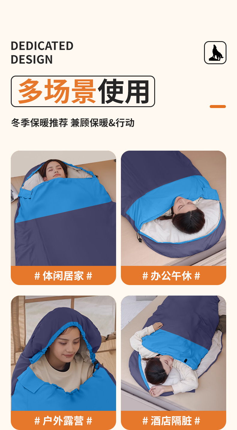 북극 늑대 야외 성인 슬리핑 백 가을과 겨울 넓어진 사무실 학교 점심 식사 슬리핑 백 휴대용 면 슬리핑 백스토어 가기