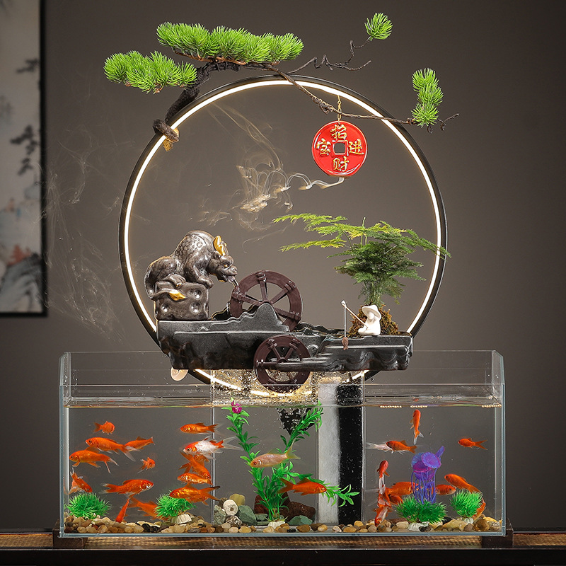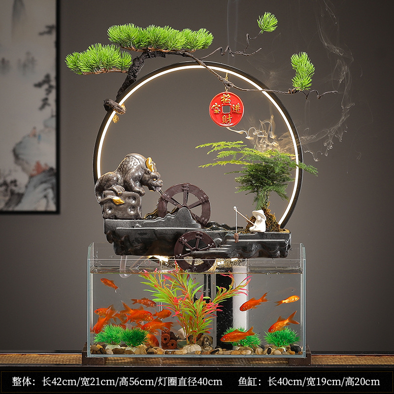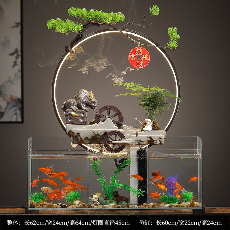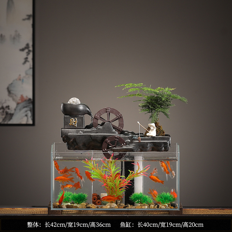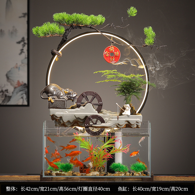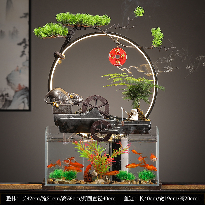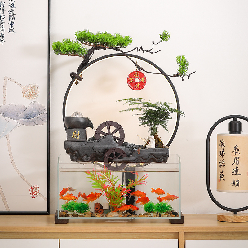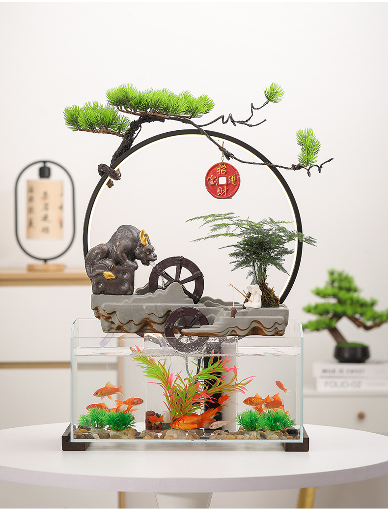 새로운 중국 창조적 인 물 장식 유리 물고기 탱크 거실 입구 장식 오피스 샵 클럽 오프닝 선물