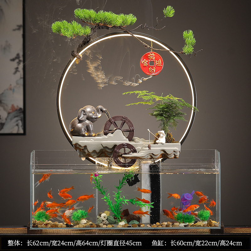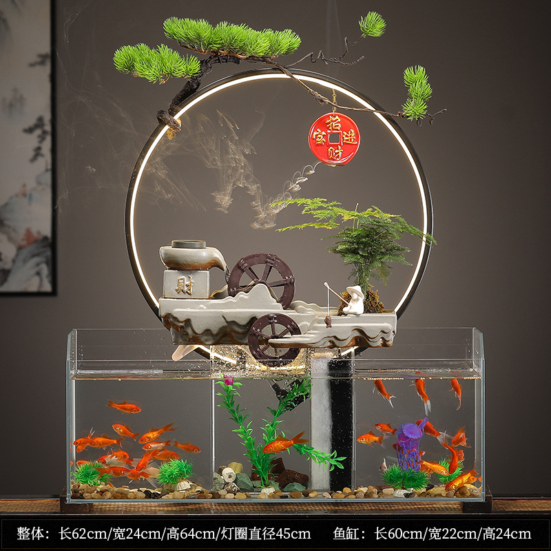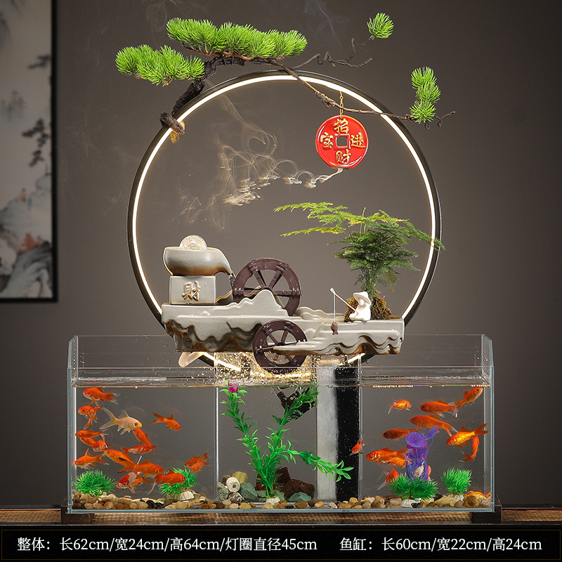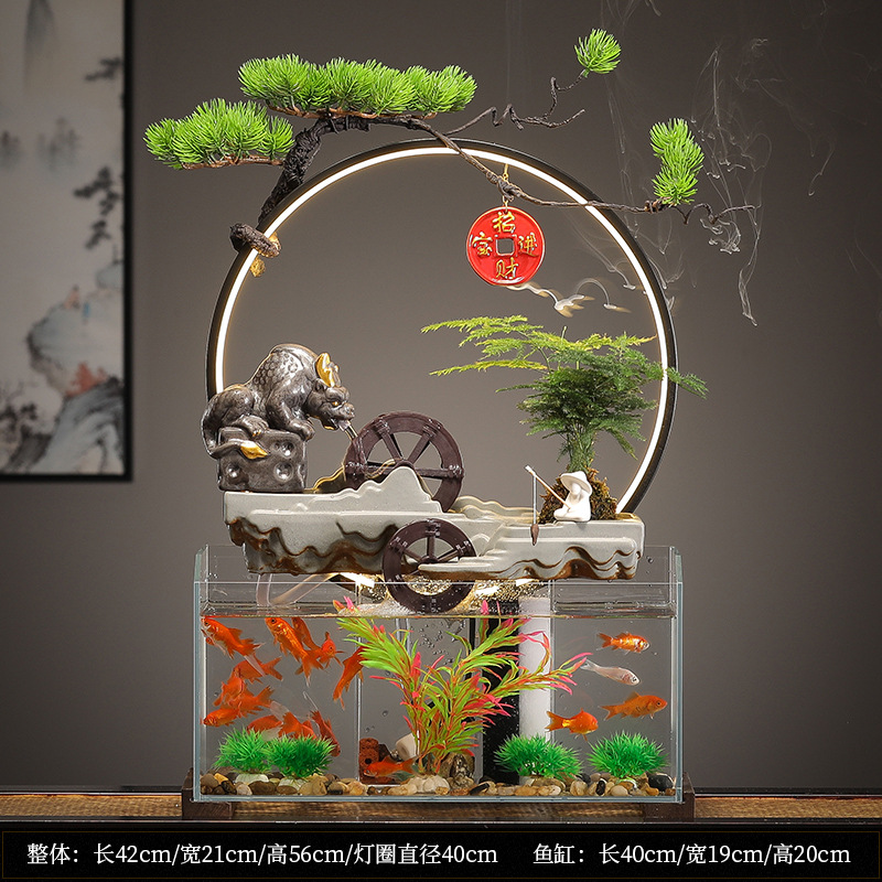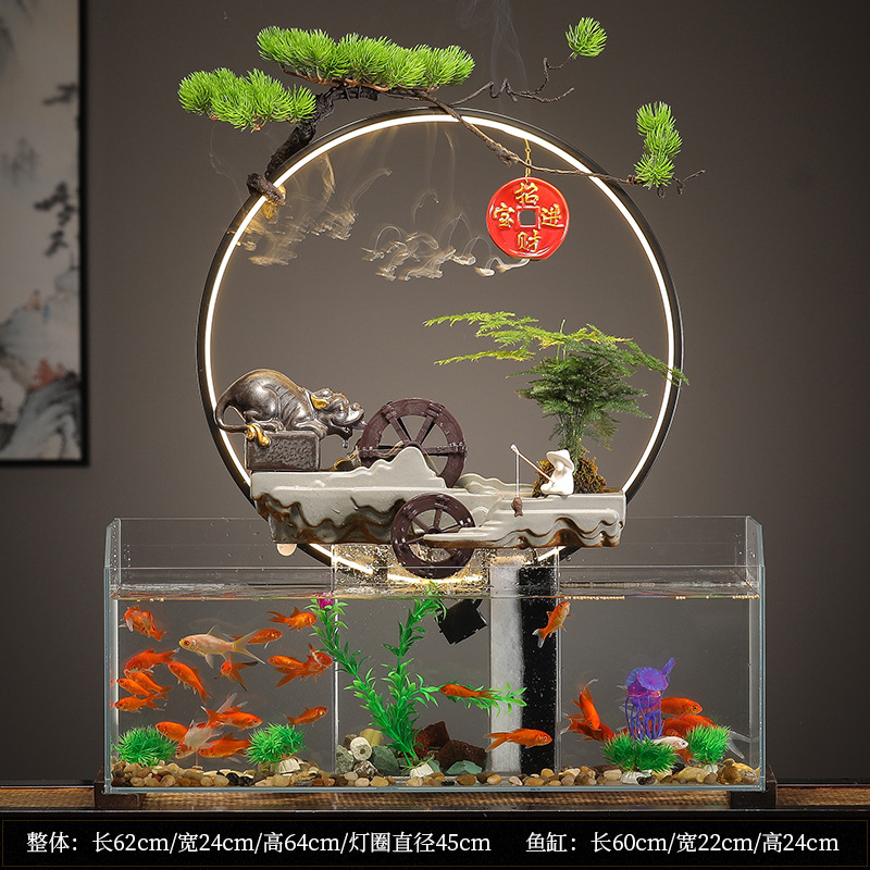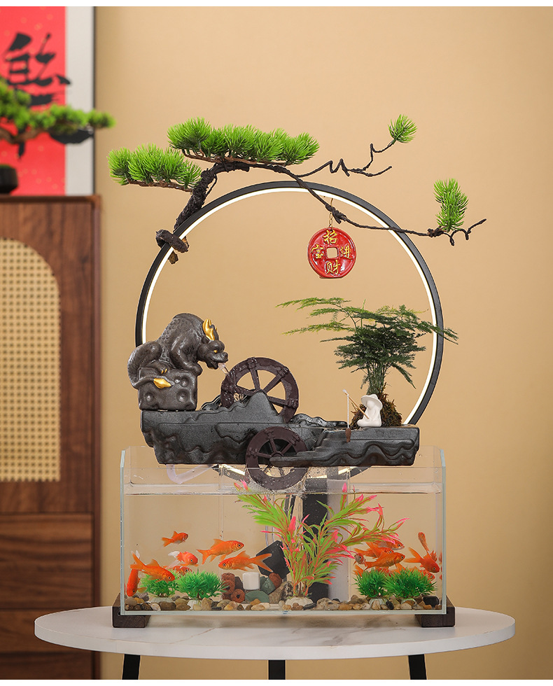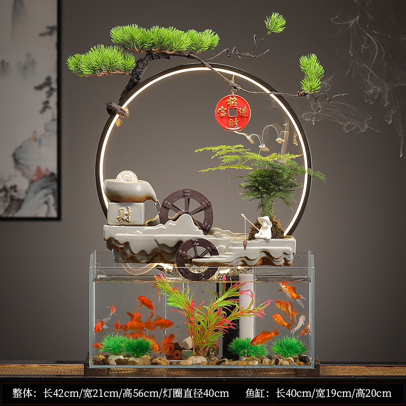 새로운 중국 창조적 인 물 장식 유리 물고기 탱크 거실 입구 장식 오피스 샵 클럽 오프닝 선물
