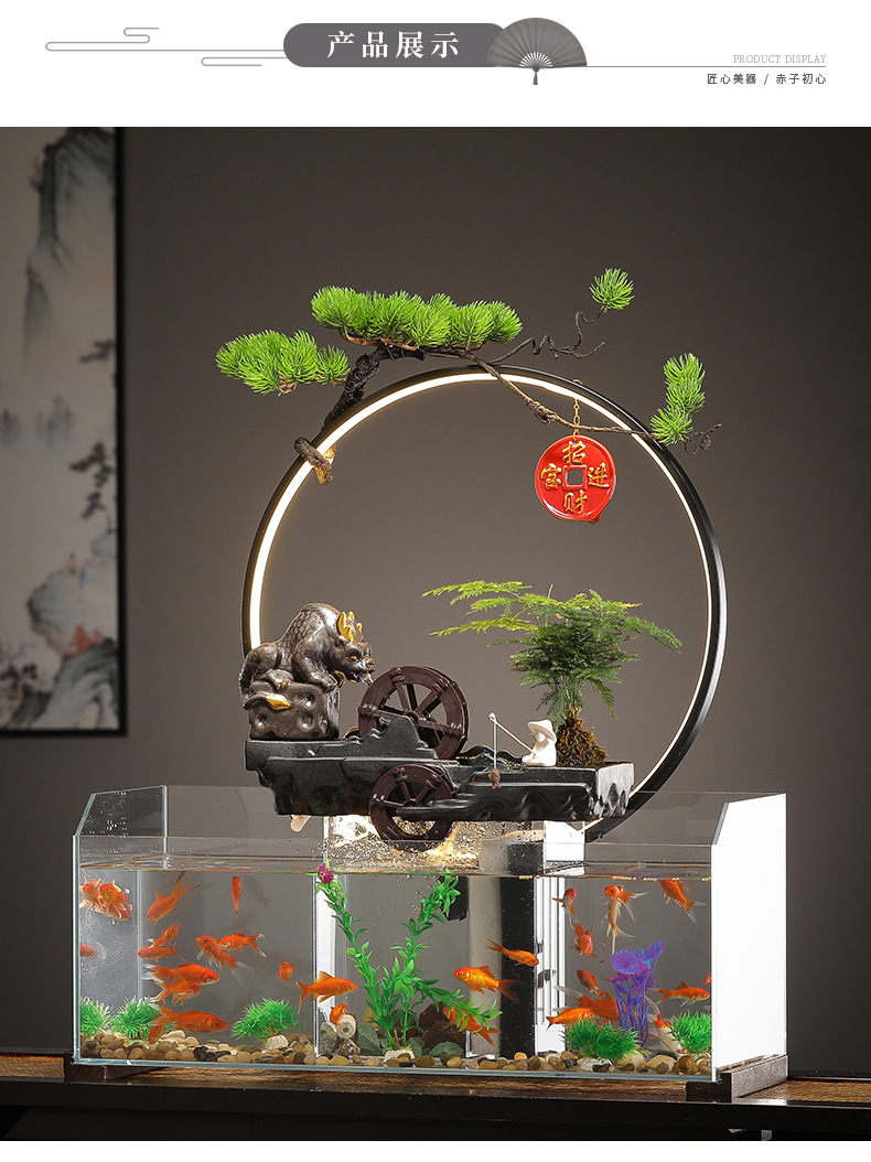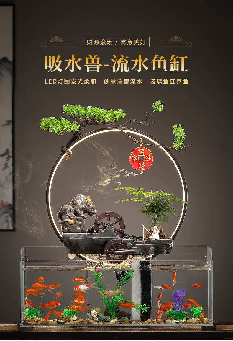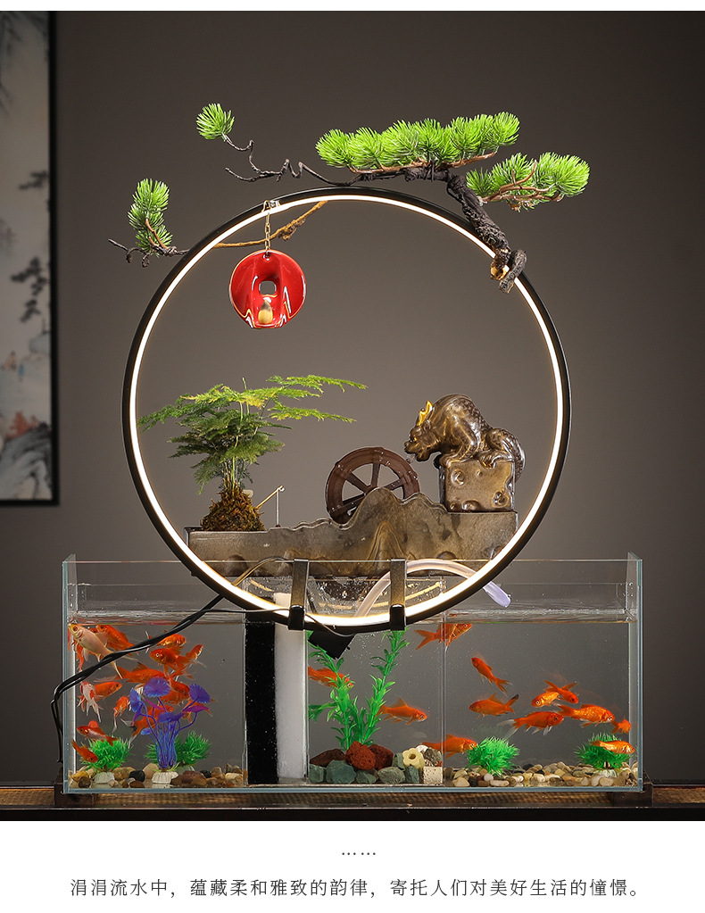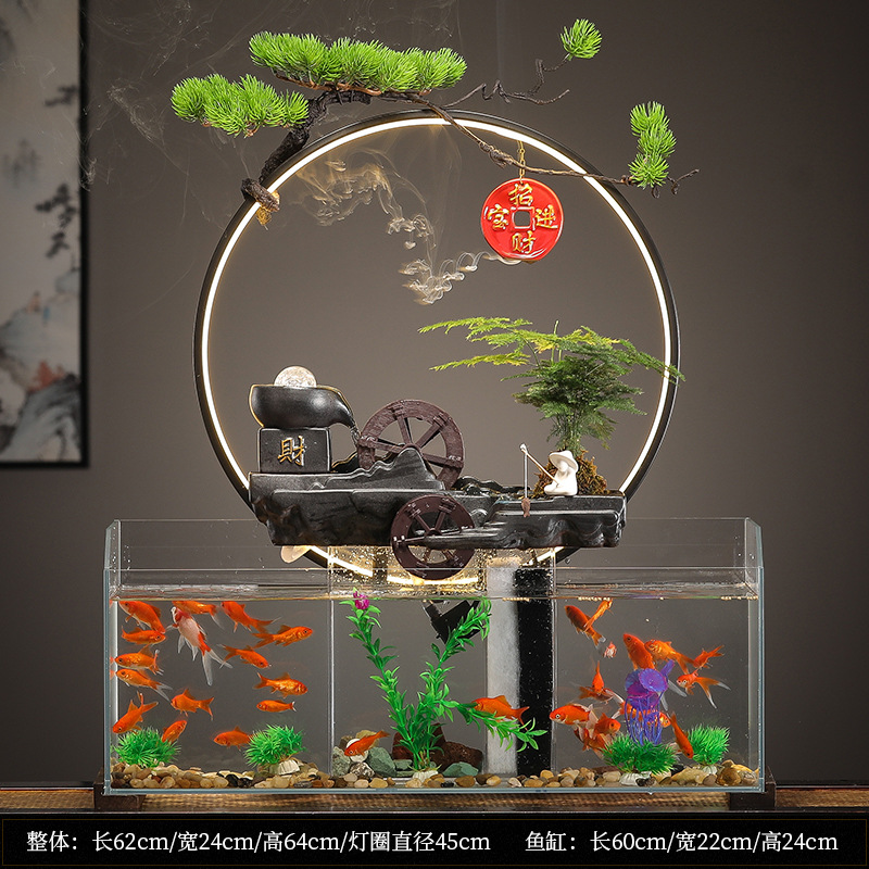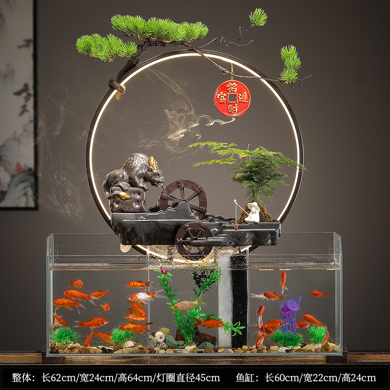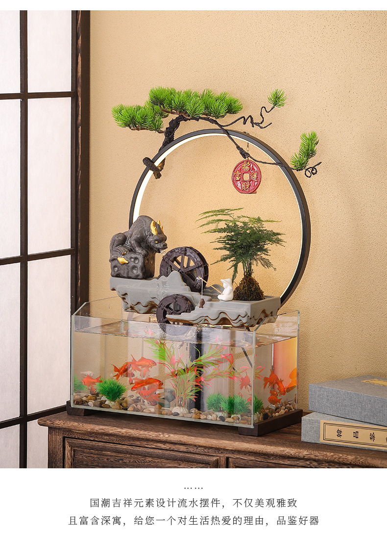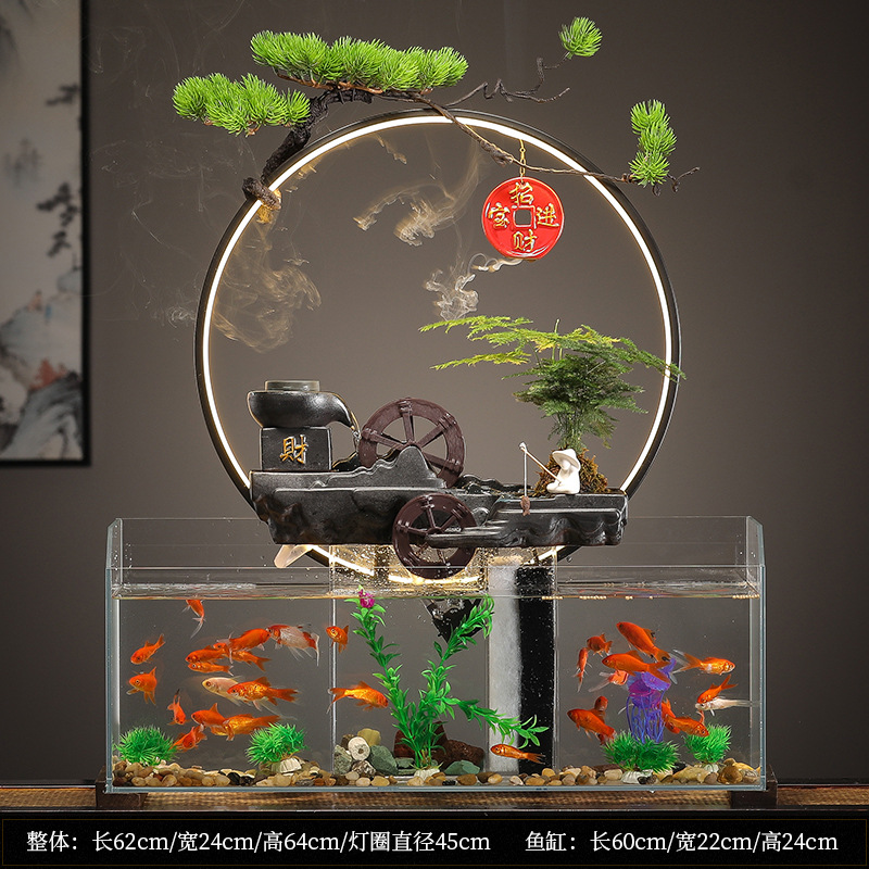 새로운 중국 창조적 인 물 장식 유리 물고기 탱크 거실 입구 장식 오피스 샵 클럽 오프닝 선물