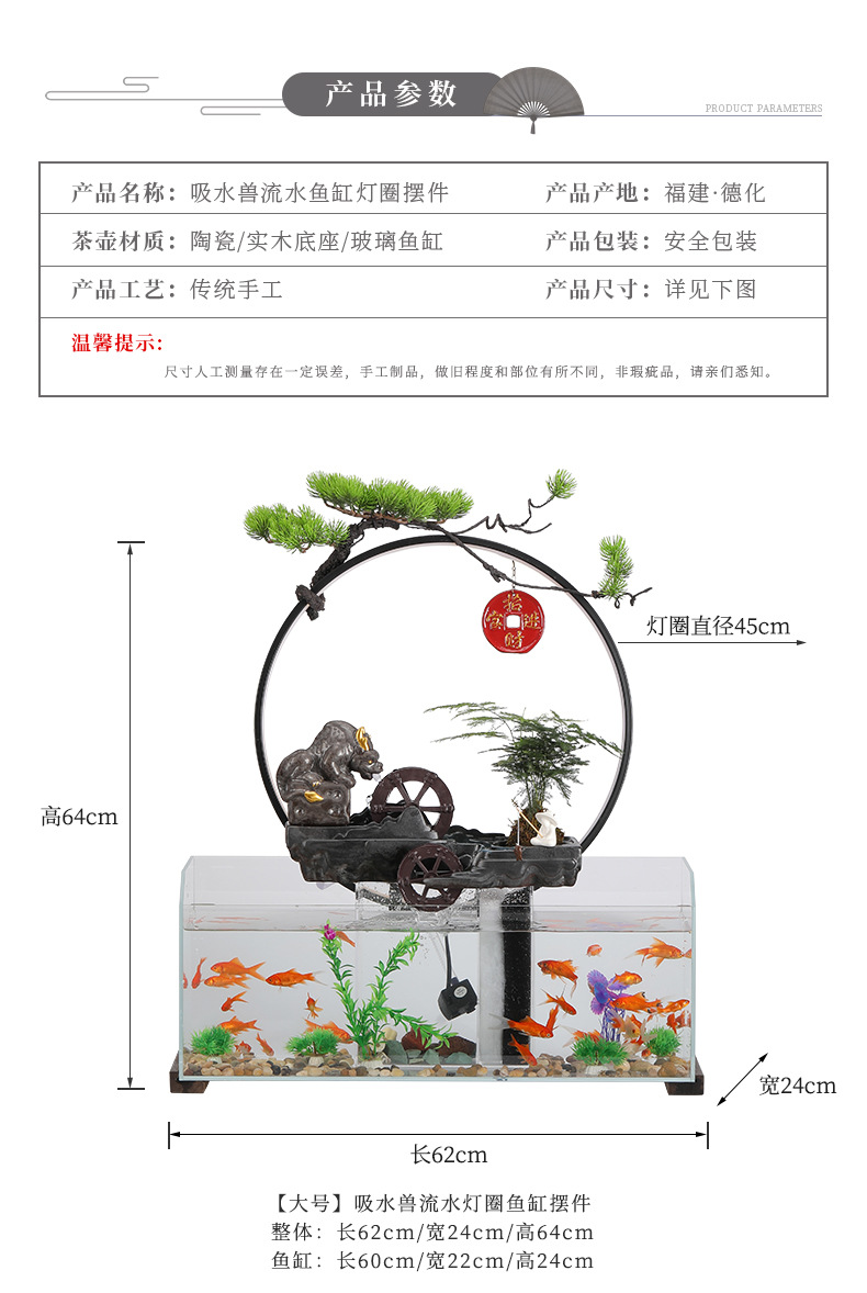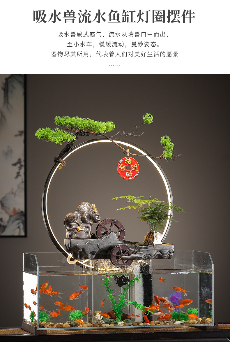 • 대형 [브라운] Jixiang 흐르는 물 수조 램프 링 장식품