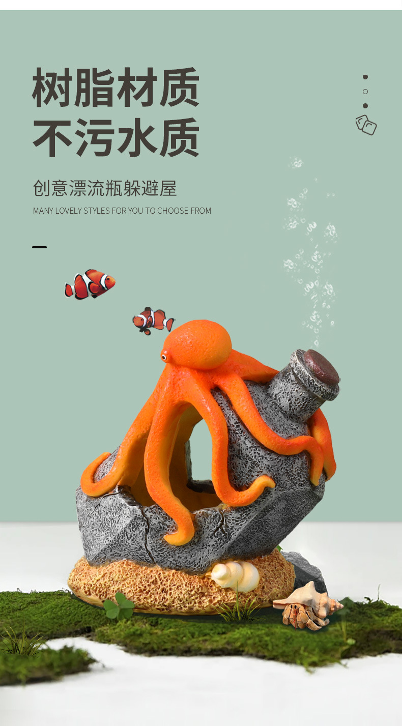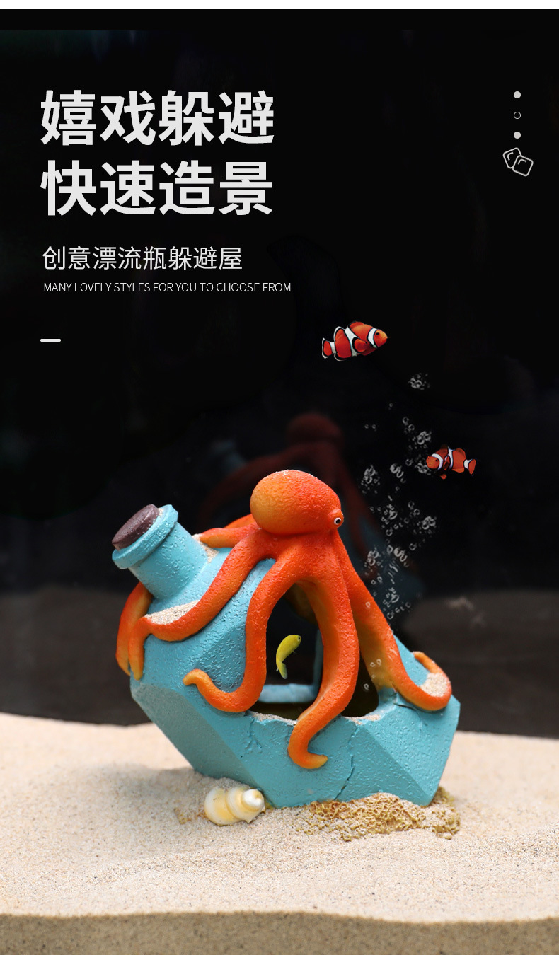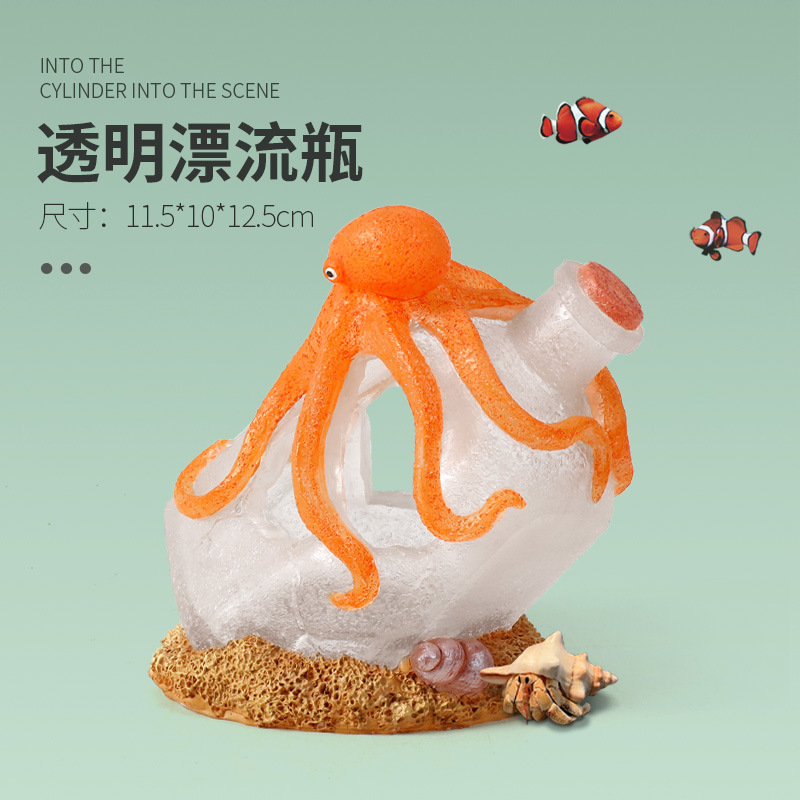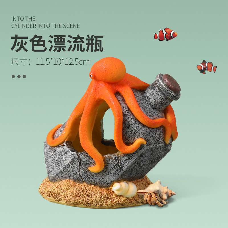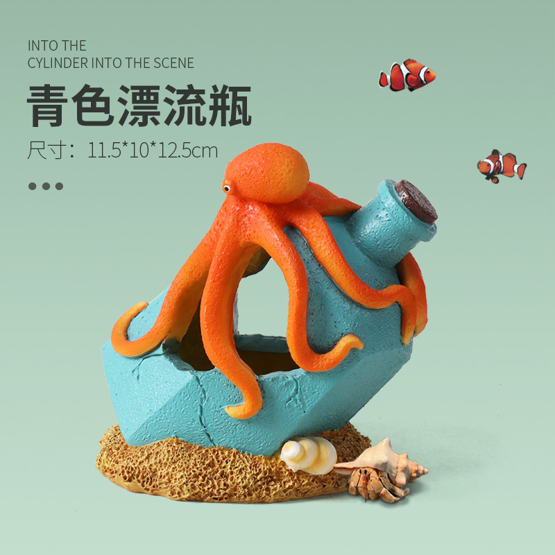 크로스보더 어항용 드리프트보틀 창의적인 장식품, 물고기와 새우 번식을 위한 은신처, 수족관 문어 장식, 피난처스토어 가기